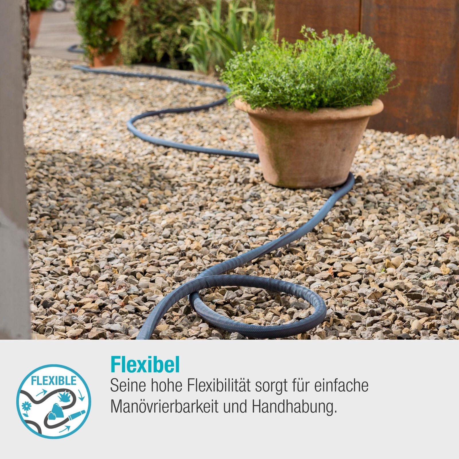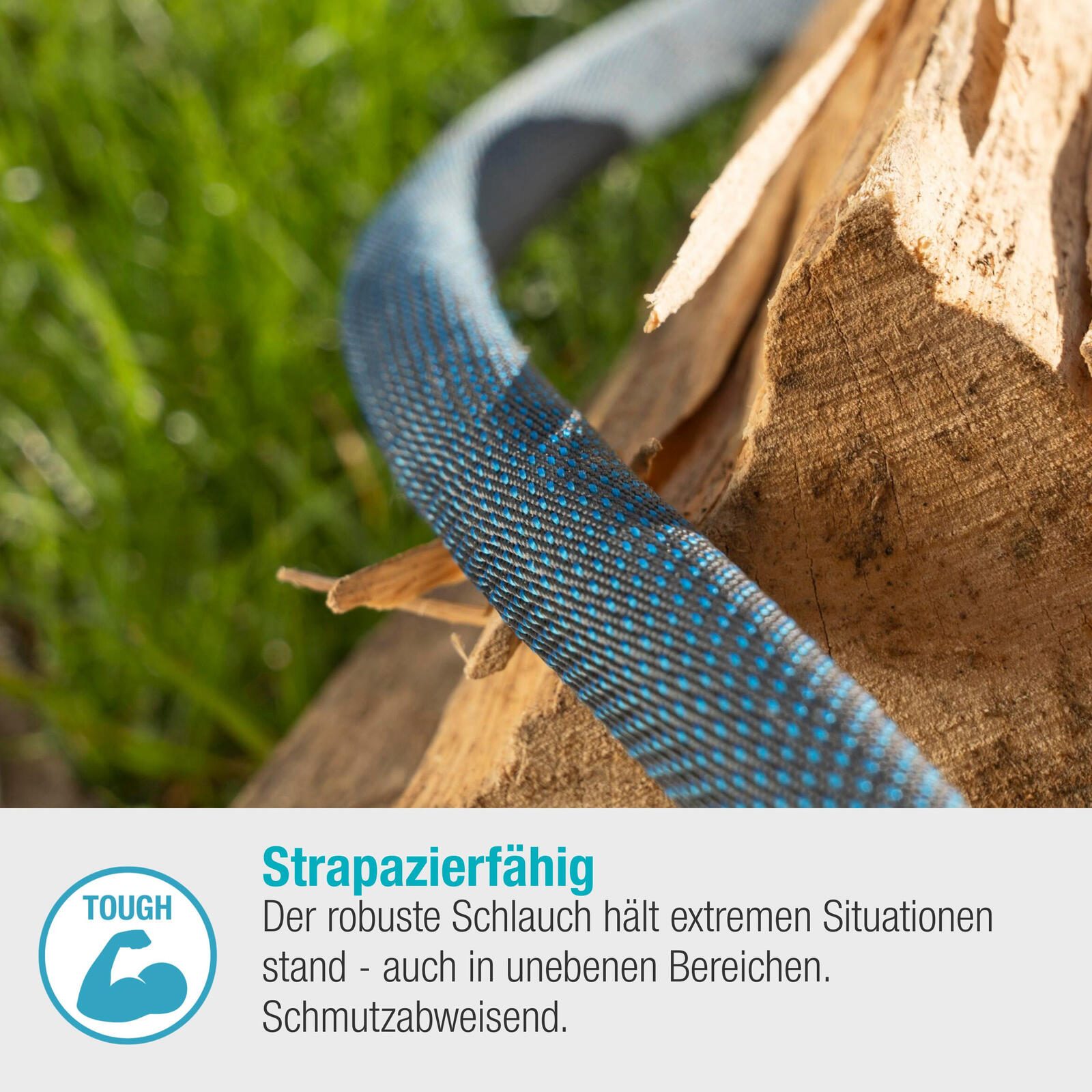 Der GARDENA Gartenschlauch Xtreme 1/2" Set ist die ideale Lösung für alle Gartenliebhaber, die Wert auf Qualität und Langlebigkeit legen. Mit einer Gesamtlänge von 10 Metern bietet dieser Schlauch ausreichend Reichweite, um selbst große Gärten mühelos zu bewässern. Das Set kommt komplett mit Original GARDENA Systemteilen, darunter eine praktische Reinigungsspritze sowie Hahnverbinder (18225/18220), die eine unkomplizierte Handhabung gewährleisten. Der Schlauch ist aus hochwertigem Textilgewebe gefertigt, was ihn besonders robust und flexibel macht. Dieses Material sorgt dafür, dass der Schlauch auch bei intensiver Nutzung nicht knickt oder bricht, was zu einer langen Lebensdauer führt. Die ansprechende blaue Farbe verleiht deinem Garten zudem einen modernen und frischen Look. Mit dem GARDENA Gartenschlauch Xtreme 1/2" Set kannst du bequem und effizient gießen, ohne dir Sorgen um Lecks oder andere Probleme machen zu müssen. Die einfache Montage und die Kompatibilität mit anderen GARDENA Produkten machen es dir leicht, dein Bewässerungssystem individuell zu gestalten. Egal, ob du Blumenbeete, Rasenflächen oder Gemüsebeete bewässern möchtest, dieser Gartenschlauch ist ein unverzichtbarer Helfer, der dir die Gartenarbeit erheblich erleichtert. Die Kombination aus Funktionalität und ansprechendem Design macht den GARDENA Gartenschlauch Xtreme 1/2" Set zu einer hervorragenden Wahl für jeden, der seinen Garten pflegen möchte. Vertraue auf die Qualität von GARDENA und genieße die Vorteile eines durchdachten Bewässerungssystems.Weiterlesen