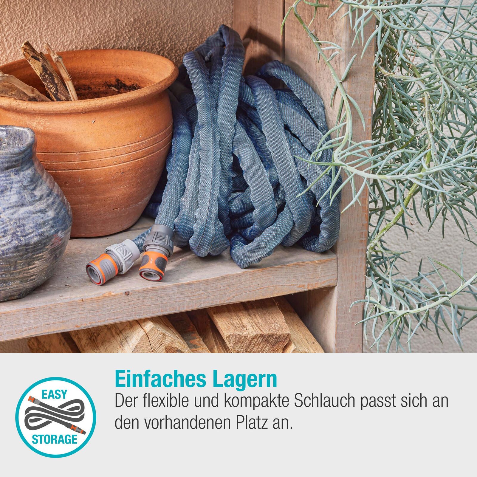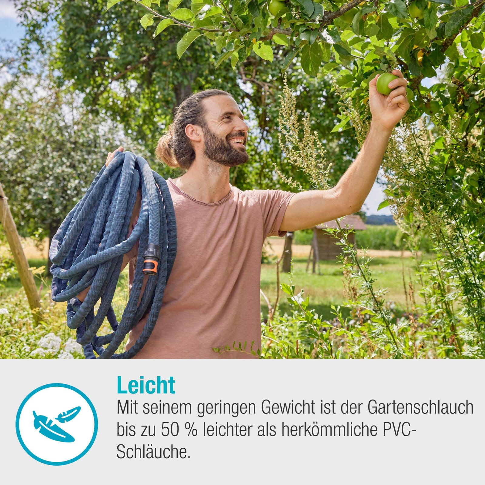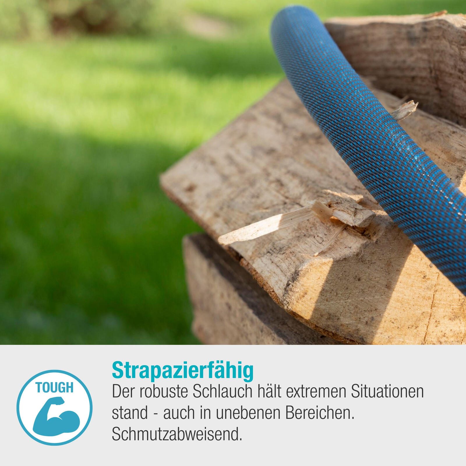 Der GARDENA Gartenschlauch Xtreme 3/4" Set ist die ideale Lösung für alle Gartenliebhaber, die Wert auf Qualität und Funktionalität legen. Mit einer beeindruckenden Schlauchlänge von 30 Metern ermöglicht dieser Schlauch eine mühelose Bewässerung selbst großer Flächen. Das hochwertige Textilgewebe sorgt nicht nur für eine hohe Flexibilität, sondern auch für eine lange Lebensdauer, sodass du lange Freude an deinem Gartenschlauch haben wirst. Die auffällige blaue Farbe des Schlauchs verleiht deinem Garten eine frische Note und hebt sich angenehm von der Umgebung ab. Das Set kommt komplett mit einem Original Schlauchverbinder und einem Wasserstopp, was dir das Anschließen und Trennen des Schlauchs erleichtert und gleichzeitig ein ungewolltes Auslaufen von Wasser verhindert. Dank des durchdachten Designs ist der GARDENA Gartenschlauch Xtreme 3/4" Set nicht nur funktional, sondern auch besonders benutzerfreundlich. Das leichte Material ermöglicht ein einfaches Handling, während die Robustheit des Textilgewebes sicherstellt, dass der Schlauch auch bei intensiver Nutzung nicht knickt oder bricht. Egal, ob du Blumenbeete, Rasenflächen oder Gemüsebeete bewässern möchtest, dieser Gartenschlauch ist die perfekte Wahl für alle, die eine zuverlässige und effiziente Bewässerungslösung suchen. Mit dem GARDENA Gartenschlauch Xtreme 3/4" Set wird die Gartenpflege zum Kinderspiel und du kannst dich ganz auf das Genießen deiner grünen Oase konzentrieren.Technische Daten
