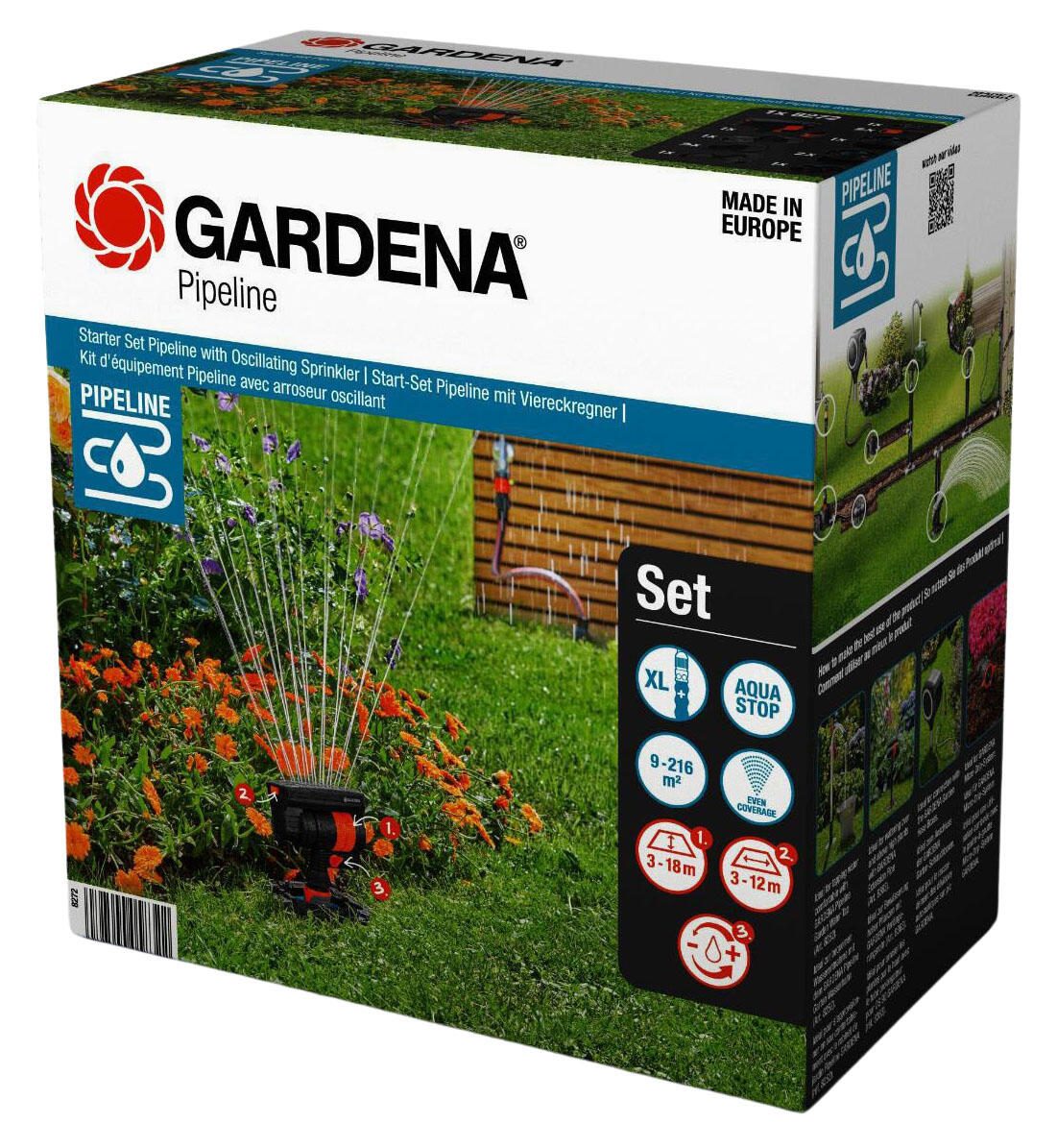 Der GARDENA Viereckregner Start-Set Pipeline ist die ideale Lösung für eine effiziente Bewässerung deiner Gartenflächen. Dieses umfassende Set enthält alles, was du benötigst, um deine Pflanzen optimal mit Wasser zu versorgen. Mit einem Gesamtinhalt von einem Profi-System Anschluss-Satz, einer Anschlussdose, zwei Wassersteckdosen, einem T-Stück (25mm), drei Verbindern (25 mm 3/4"-Innengewinde), einem Entwässerungsventil und dem Viereckregner selbst, bietet dieses Set eine durchdachte und praktische Ausstattung für jeden Gartenliebhaber. Hergestellt aus hochwertigem Kunststoff, ist der GARDENA Viereckregner nicht nur robust, sondern auch langlebig. Die elegante schwarze Farbe fügt sich harmonisch in jede Gartenlandschaft ein und sorgt für eine ansprechende Optik. Dieses Set ist besonders geeignet für Flächen von 9 bis 216 m², was es zu einer flexiblen Wahl für Gärten unterschiedlicher Größe macht. Die einfache Handhabung und Installation des GARDENA Viereckregners ermöglichen es dir, deine Bewässerungsbedürfnisse schnell und unkompliziert zu erfüllen. Der Viereckregner sorgt für eine gleichmäßige Verteilung des Wassers, sodass deine Pflanzen stets die richtige Menge erhalten. Mit diesem Set kannst du sicherstellen, dass dein Garten in voller Pracht erblüht, während du gleichzeitig Zeit und Mühe beim Gießen sparst. Entdecke die Vorteile des GARDENA Viereckregner Start-Set Pipeline und genieße die Leichtigkeit der automatisierten Gartenbewässerung.Technische Daten