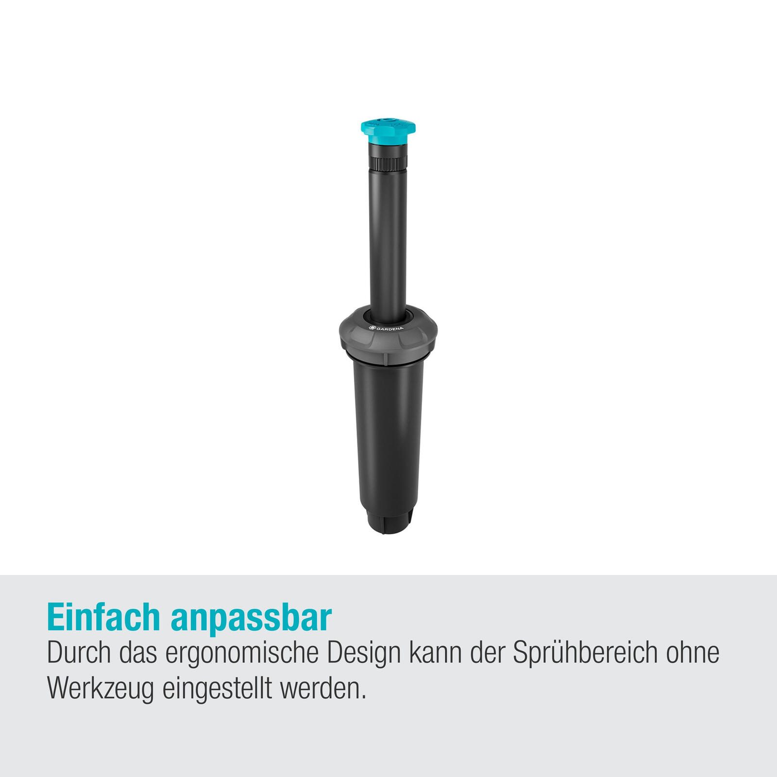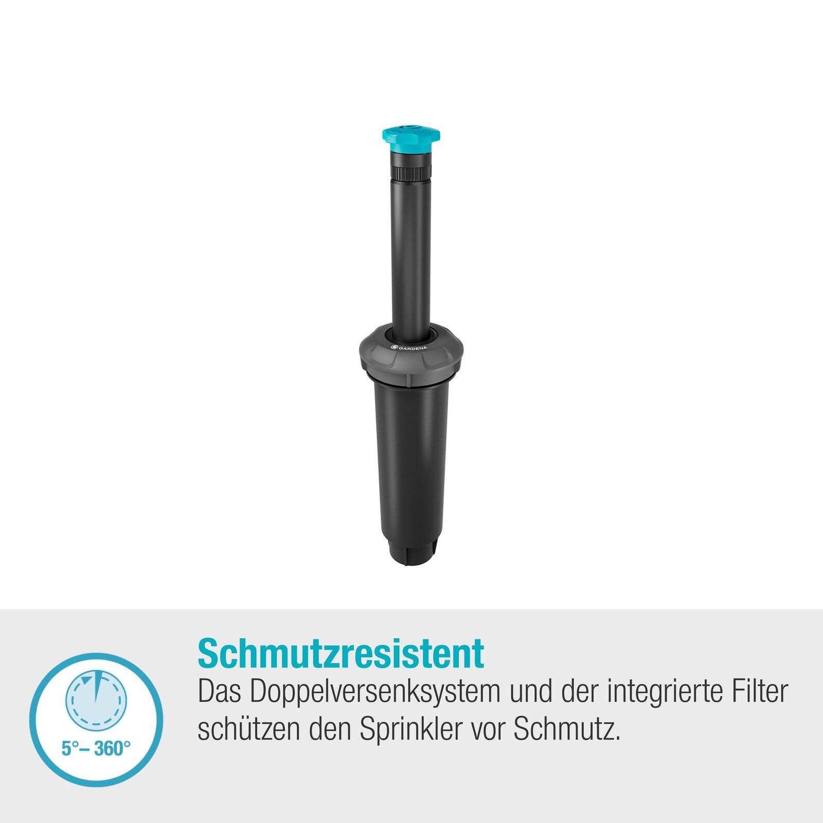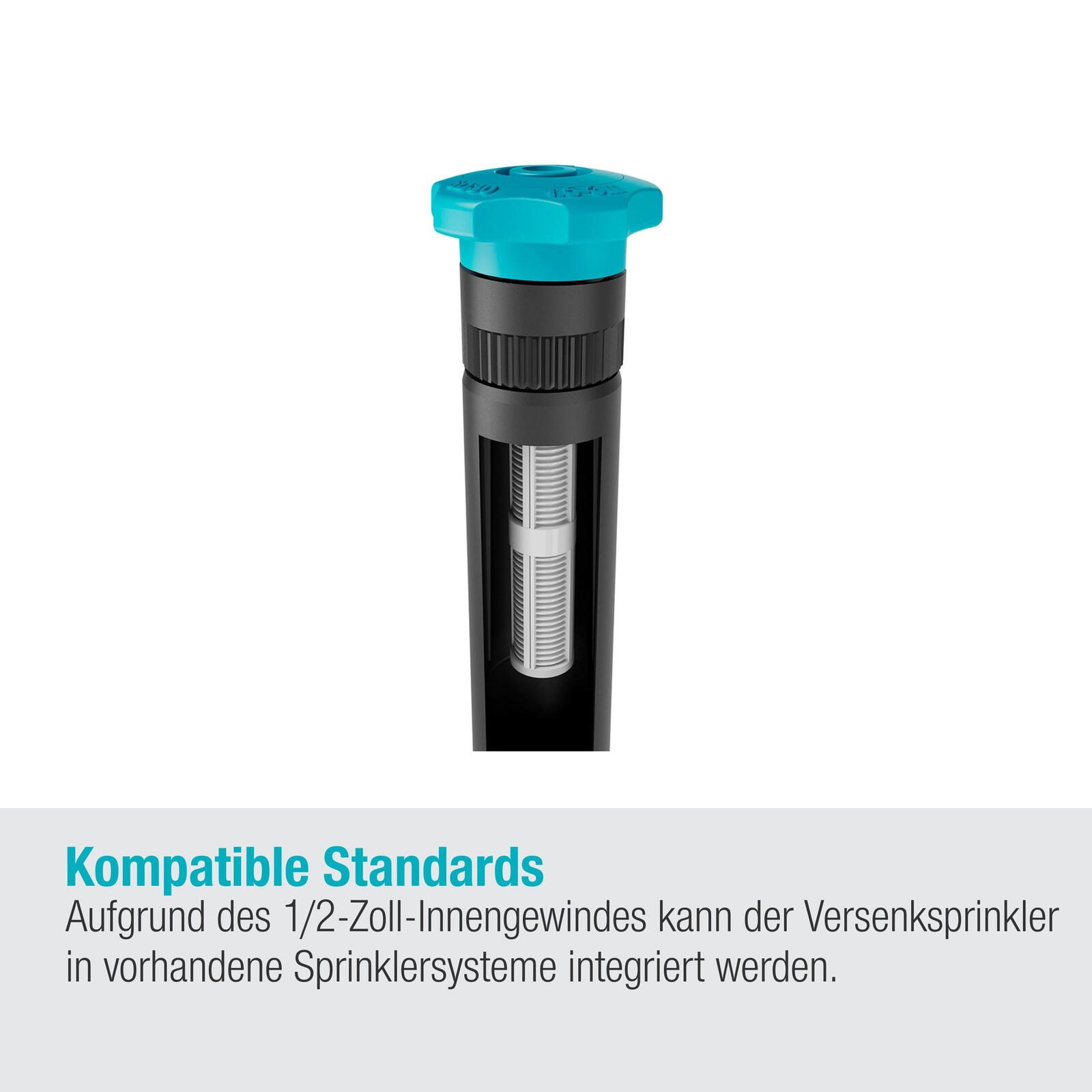 Der GARDENA Versenkregner SD30 ist die ideale Lösung für eine effiziente und gleichmäßige Bewässerung deines Gartens. Mit einem eleganten Design in Schwarz fügt sich dieser Regner harmonisch in jede Gartenlandschaft ein. Hergestellt aus hochwertigem Kunststoff, bietet er nicht nur Langlebigkeit, sondern auch eine hohe Widerstandsfähigkeit gegenüber Witterungseinflüssen, sodass du dich auf zuverlässige Leistung über viele Jahre verlassen kannst. Dieser Versenkregner ist speziell für Flächen von bis zu 30 m² geeignet und sorgt dafür, dass deine Pflanzen optimal mit Wasser versorgt werden. Ob Blumenbeete, Rasenflächen oder kleine Gemüsegärten – der GARDENA SD30 passt sich deinen individuellen Bedürfnissen an und gewährleistet eine gleichmäßige Verteilung des Wassers. Durch seine innovative Technik versinkt der Regner nach der Bewässerung im Boden, sodass er keine Stolperfallen im Garten darstellt und das Gesamtbild deines Außenbereichs nicht stört. Die einfache Installation und Handhabung machen den GARDENA Versenkregner SD30 zu einer benutzerfreundlichen Wahl für Hobbygärtner und Landschaftsarchitekten gleichermaßen. Mit diesem Produkt kannst du sicherstellen, dass deine Pflanzen auch während trockener Perioden optimal versorgt werden. Die Kombination aus Funktionalität und ansprechendem Design macht diesen Regner zu einem unverzichtbaren Bestandteil deiner Gartenausstattung. Erlebe die Vorteile einer automatisierten Bewässerung mit dem GARDENA Versenkregner SD30 und genieße einen grünen, blühenden Garten, der deine Nachbarn neidisch machen wird.Technische Daten