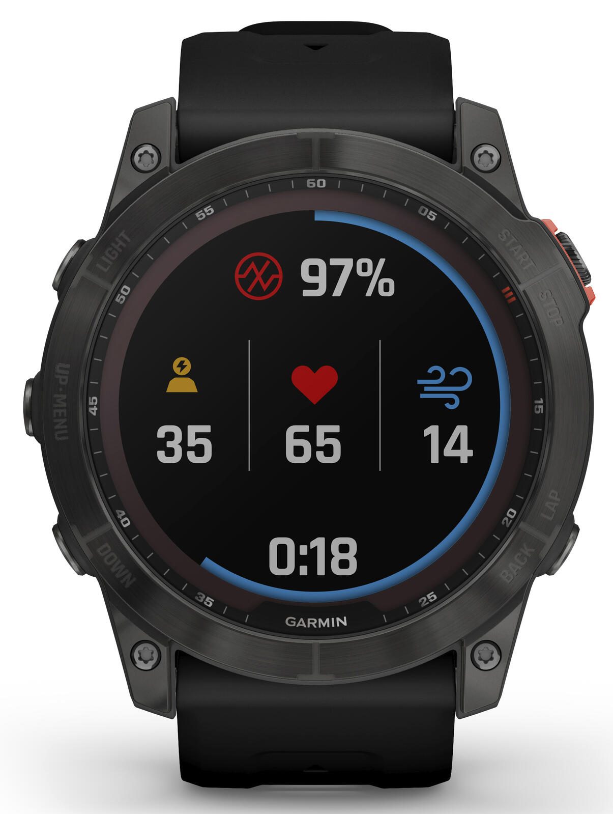 - Eigenschaften: Anruf anzeigen, Blutsauerstoffmessung, Distanzmessung, Flüssigkeitsaufnahme, Garmin Pay, Herzfrequenzmessung, Höhenmesser, Lautsprecher, Musiksteuerung, Pulsmessung, Schlafanalyse, Schrittzähler, Stresslevelmessung