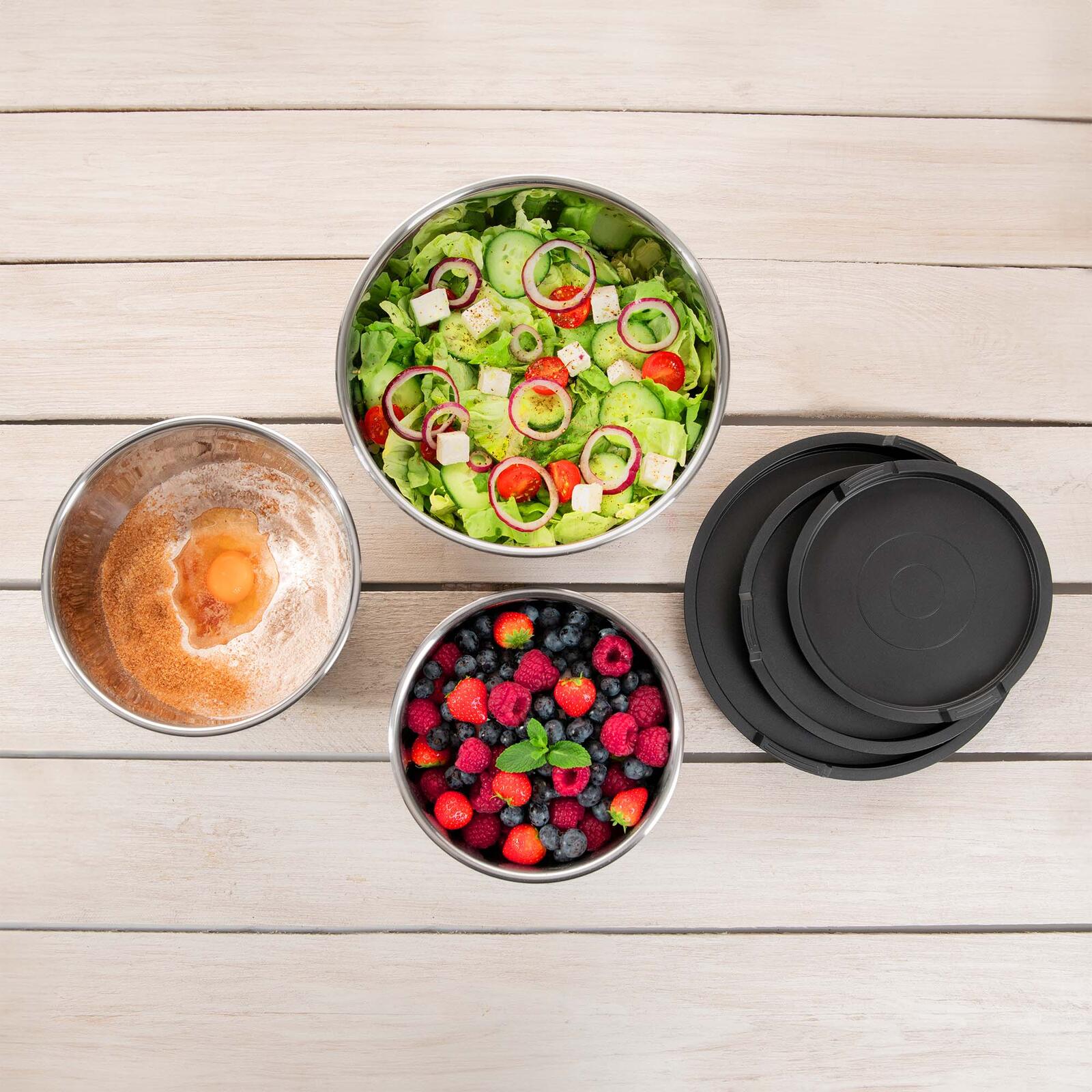 Genius Rührschüsseln Edelstahl, Set 6-tlg. schwarz, silber 1,7/3,4/5,6 l