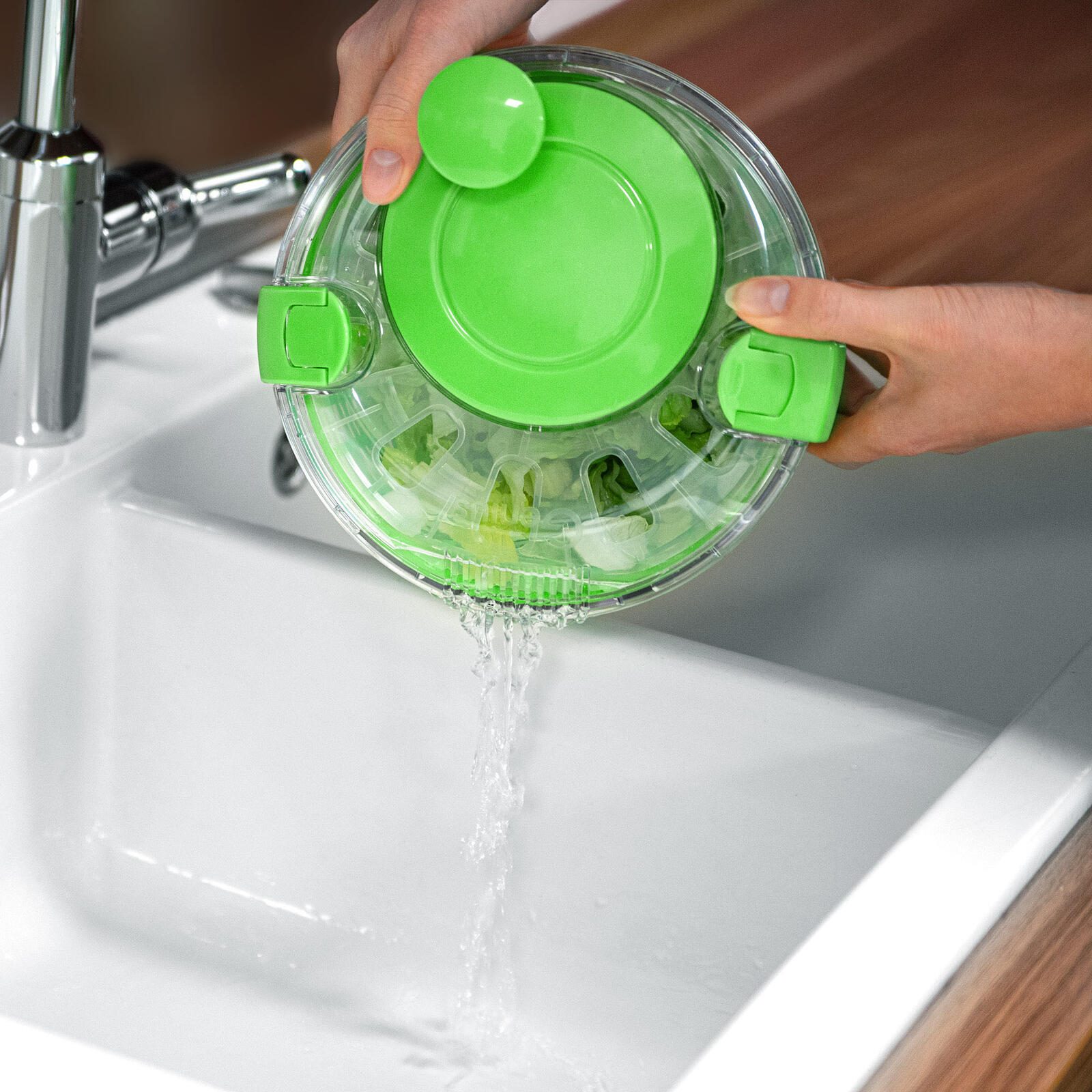 Die Genius Salatschleuder 2400 ml in einem frischen Grünton ist das ideale Küchenaccessoire für alle, die Wert auf gesunde und frisch zubereitete Salate legen. Mit einem großzügigen Fassungsvermögen von 2400 ml bietet sie ausreichend Platz für deine Lieblingssalate und sorgt dafür, dass du immer genügend Zutaten für ein köstliches Gericht parat hast. Die Salatschleuder überzeugt nicht nur durch ihre Funktionalität, sondern auch durch ihr durchdachtes Design. Sie ist drehbar und ermöglicht so ein effektives und schnelles Trocknen des Salates. Die manuelle Bedienung sorgt dafür, dass du die Kontrolle über den Trocknungsprozess behältst, während die integrierte Schüttöffnung das einfache Entleeren des Wassers ermöglicht. Ein besonderes Highlight ist die Frischhaltefunktion, die dafür sorgt, dass deine zubereiteten Salate länger frisch bleiben. Der mitgelieferte Deckel schützt die Zutaten vor Verunreinigungen und sorgt dafür, dass du deine Salate auch problemlos aufbewahren kannst. Die Auffangschale fängt überschüssiges Wasser auf und hält deine Arbeitsfläche sauber. Hergestellt aus lebensmittelechtem Kunststoff, ist die Genius Salatschleuder nicht nur robust, sondern auch sicher im Gebrauch. Sie lässt sich leicht reinigen und ist somit der perfekte Begleiter in deiner Küche. Egal, ob du ein erfahrener Koch oder ein Hobbykoch bist, diese Salatschleuder wird schnell zu einem unverzichtbaren Utensil in deinem Küchenarsenal. Die Kombination aus ansprechendem Design und praktischen Funktionen macht die Genius Salatschleuder zu einem Must-have für jeden, der gesunde Ernährung schätzt und gleichzeitig Wert auf eine einfache Handhabung legt.Technische Daten