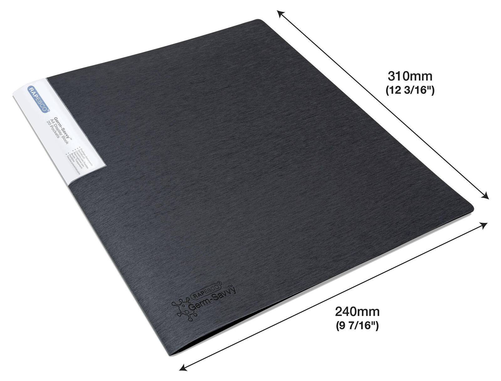 Das RAPESCO® Sichtbuch Germ-Savvy ist nicht nur ein praktisches Accessoire für den Büroalltag, sondern auch ein zuverlässiger Partner in puncto Hygiene. Mit seiner Ausführung mit antibakteriellem Schutz bietet es nicht nur Schutz für deine Dokumente, sondern auch für dich. Der schwarze Farbton verleiht dem Sichtbuch einen professionellen Look, der für jede Umgebung geeignet ist.