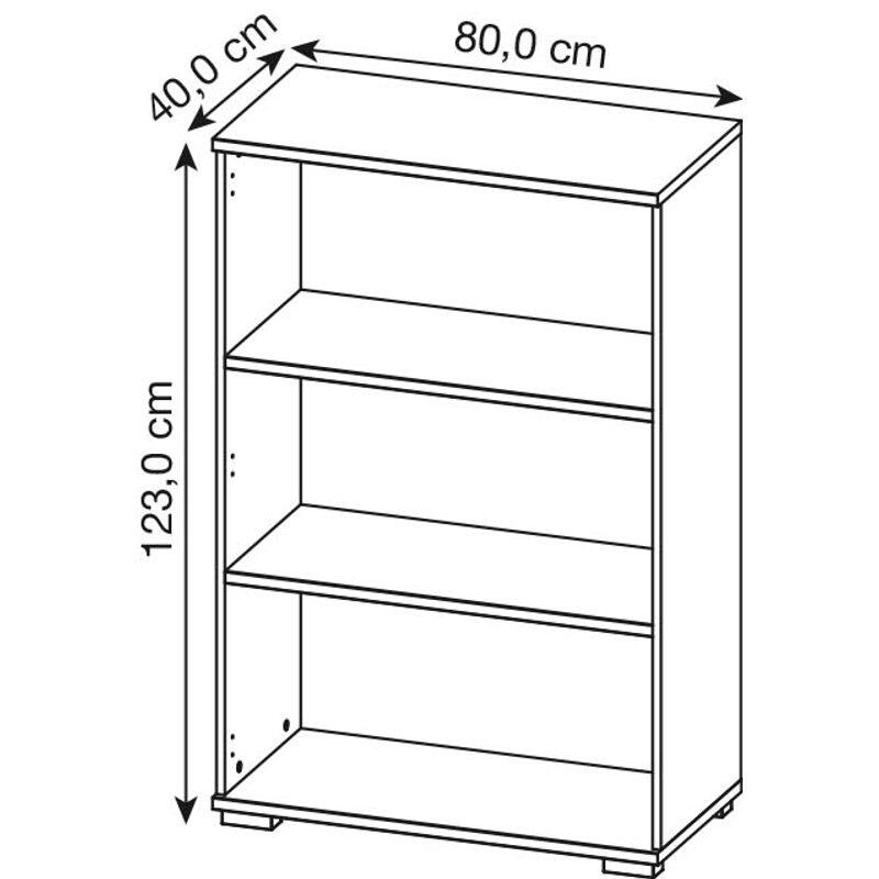- Aktenregal mit drei offenen Fächern in Ordnerhöhe (jeweils belastbar bis zu 22 kg)