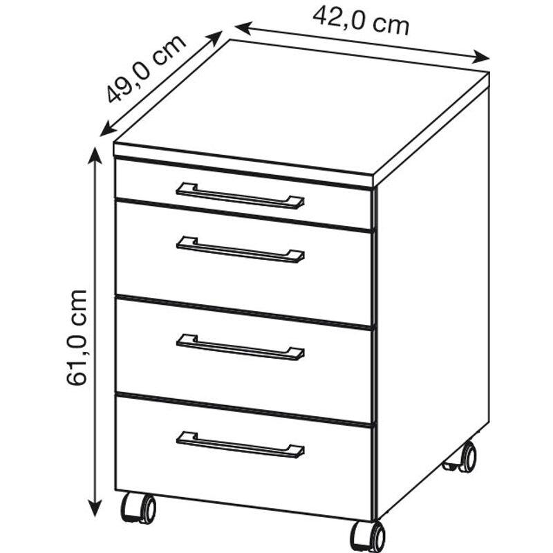 Ausgestattet mit vier Schubladen, bietet der Rollcontainer ausreichend Stauraum für deine Utensilien. Die oberste Schublade ist mit einem speziellen Utensilienfach versehen und kann bis zu 1 kg belastet werden, während die restlichen Schubladen jeweils bis zu 10 kg tragen können. So hast du deine wichtigsten Büromaterialien stets griffbereit und ordentlich verstaut.