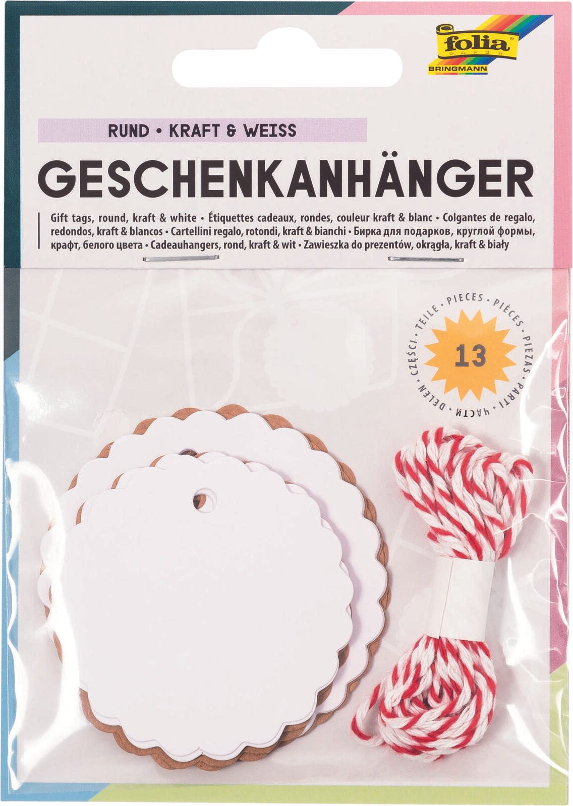 Die Geschenkanhänger RUND 12 St sind perfekt, um Ihren Geschenken eine besondere Note zu verleihen. Jeder Anhänger hat einen Durchmesser von RUND und wird in einer Verpackungseinheit von 12 Stück geliefert. Dank der Farben weiß und natur passen sie zu verschiedenen Anlässen wie Weihnachten, Ostern und allgemeinen Festivitäten.
