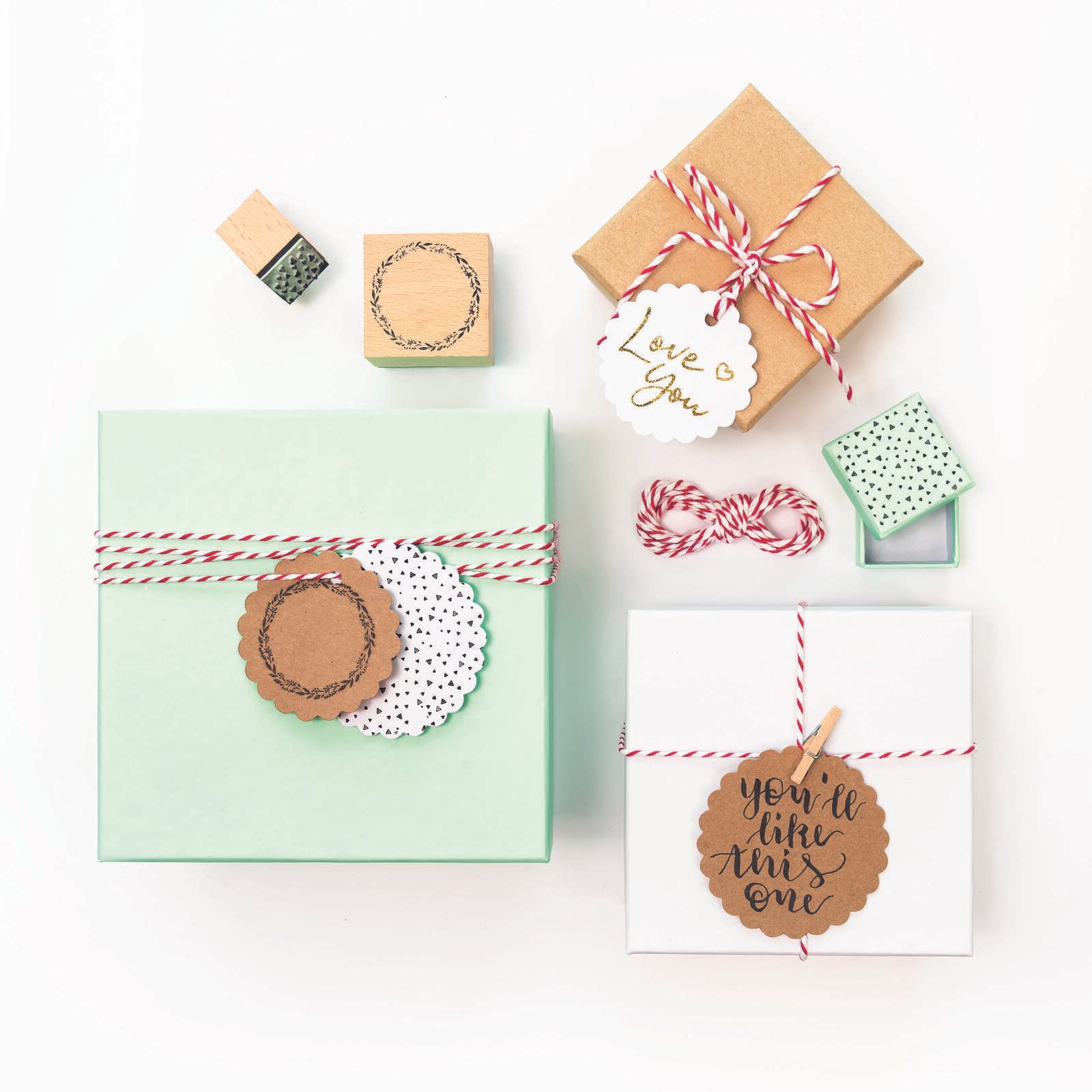 - Besonderheiten: 12 runde Papier-Geschenkanhänger in natur & weiß inklusive 2 m Schnur