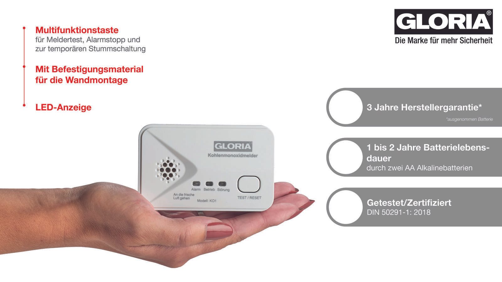 Als ein Produkt des renommierten Herstellers GLORIA - bekannt für seine Qualität und Zuverlässigkeit - trägt der CO-Melder KO1 die Gewissheit einer zuverlässigen Kohlenmonoxidüberwachung in sich.