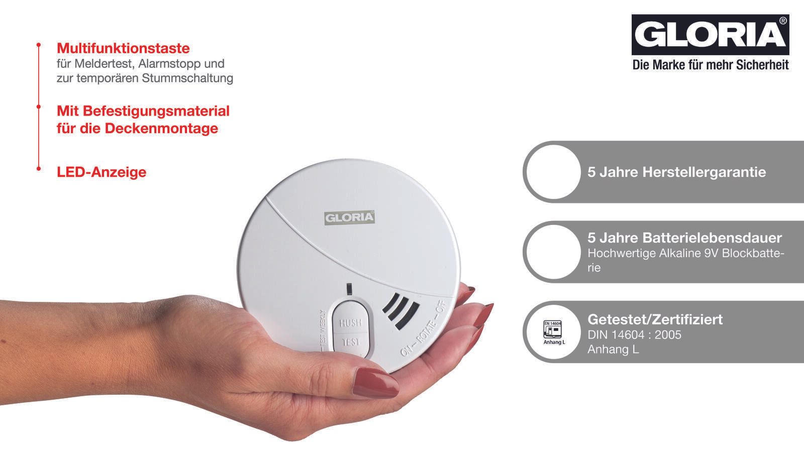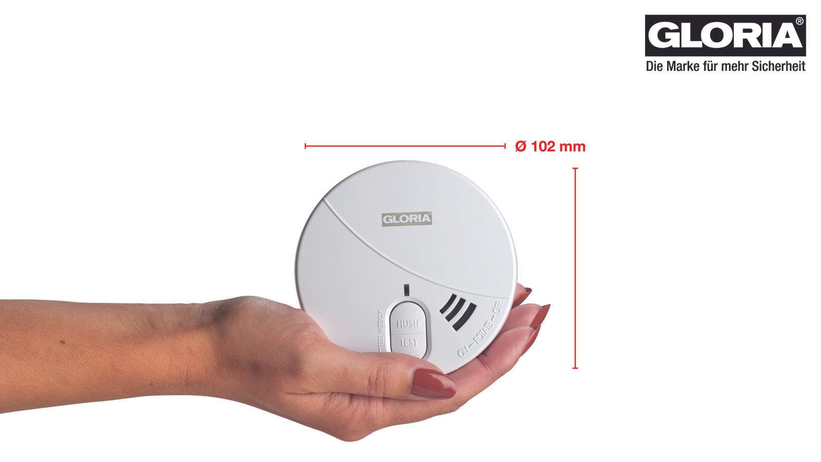 Der GLORIA Rauchmelder bietet dir zuverlässigen Brandschutz in deinem Zuhause. Mit einer Lieferung, die das Befestigungsmaterial bereits beinhaltet, kannst du ihn einfach und schnell installieren. Sein Durchmesser von 10,6 cm und eine Höhe von 3,5 cm sorgen dafür, dass er unaufdringlich an der Decke angebracht werden kann.