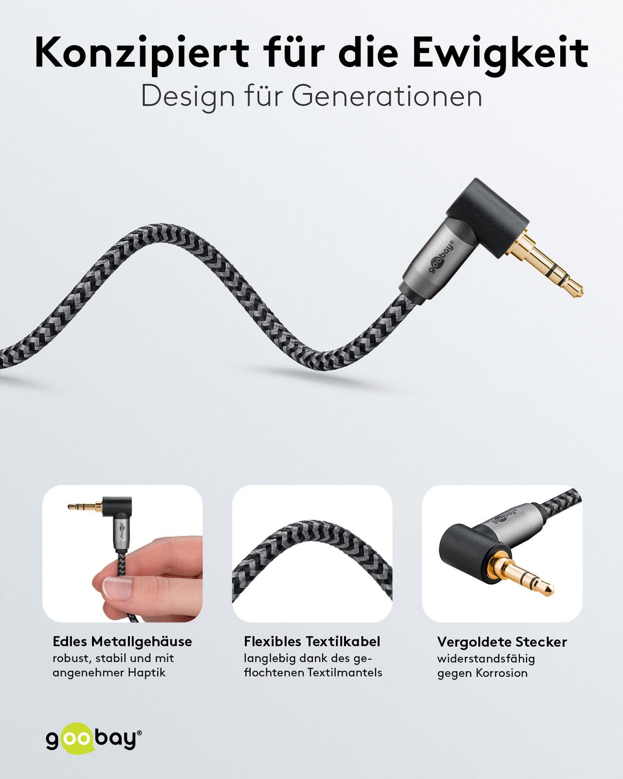 Für goobay 3,5 mm Klinke Klinkenkabel 2,0 m silber, schwarz, 1 St.