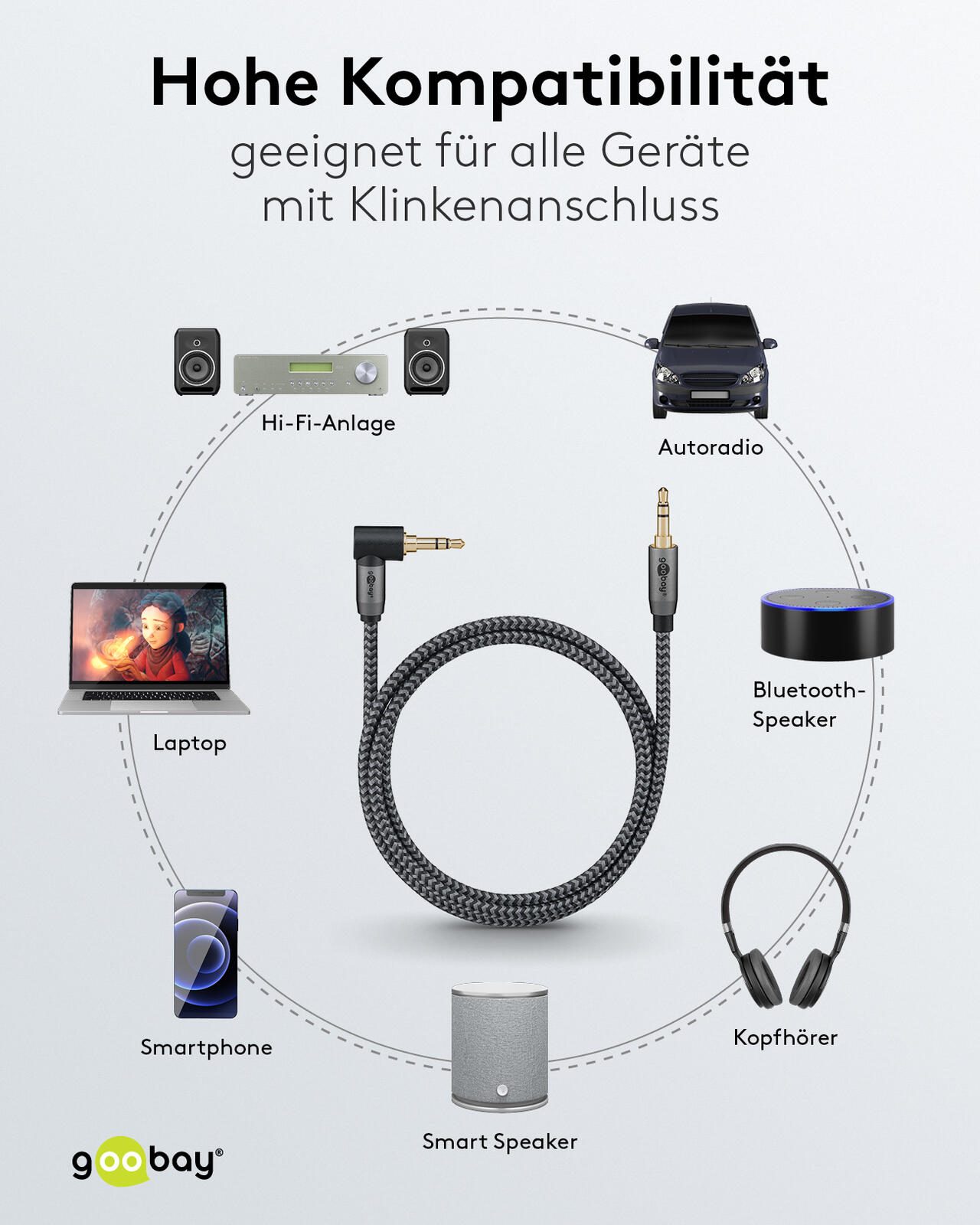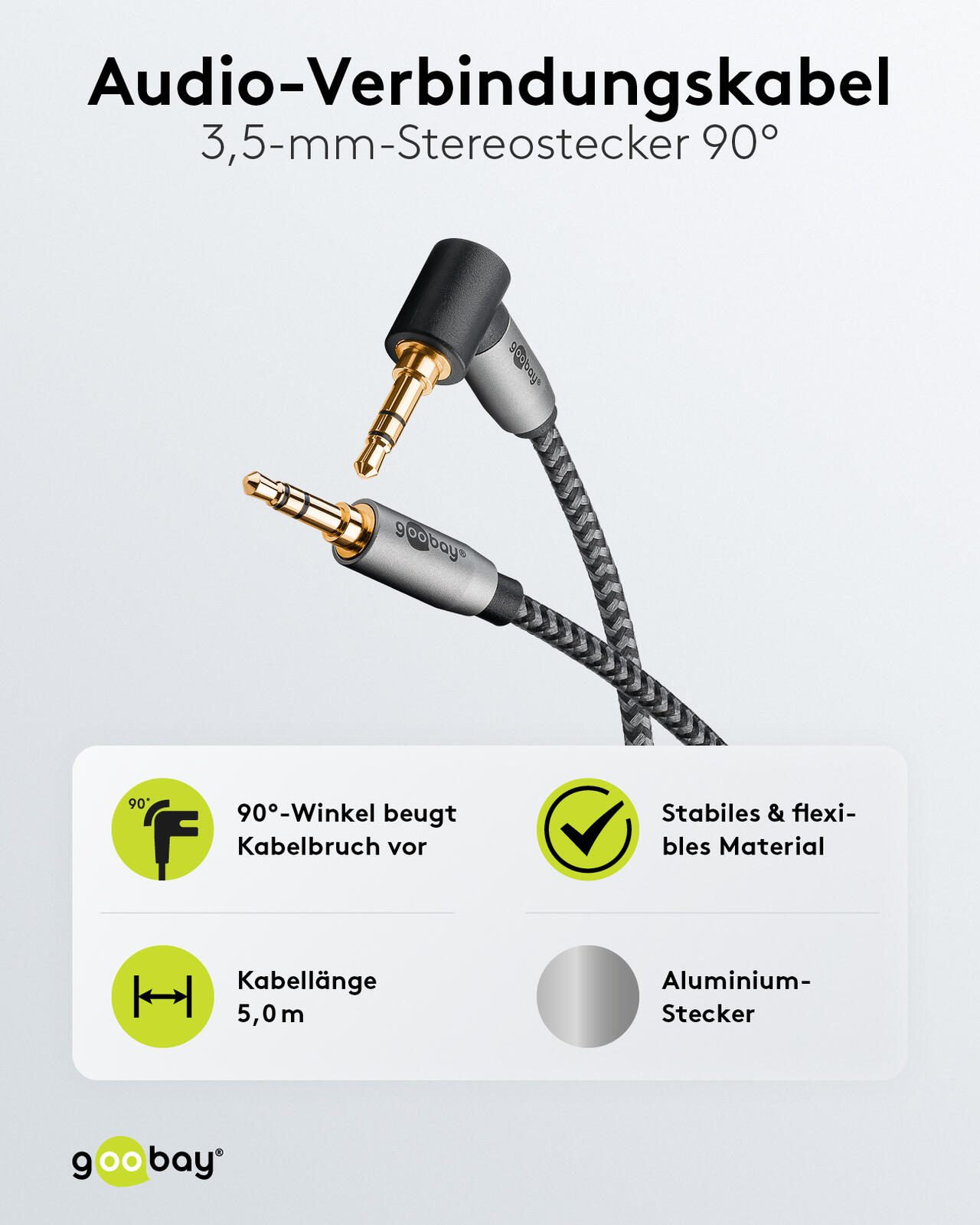 goobay 3,5 mm Klinke Klinkenkabel 5,0 m silber, schwarz, 1 St.