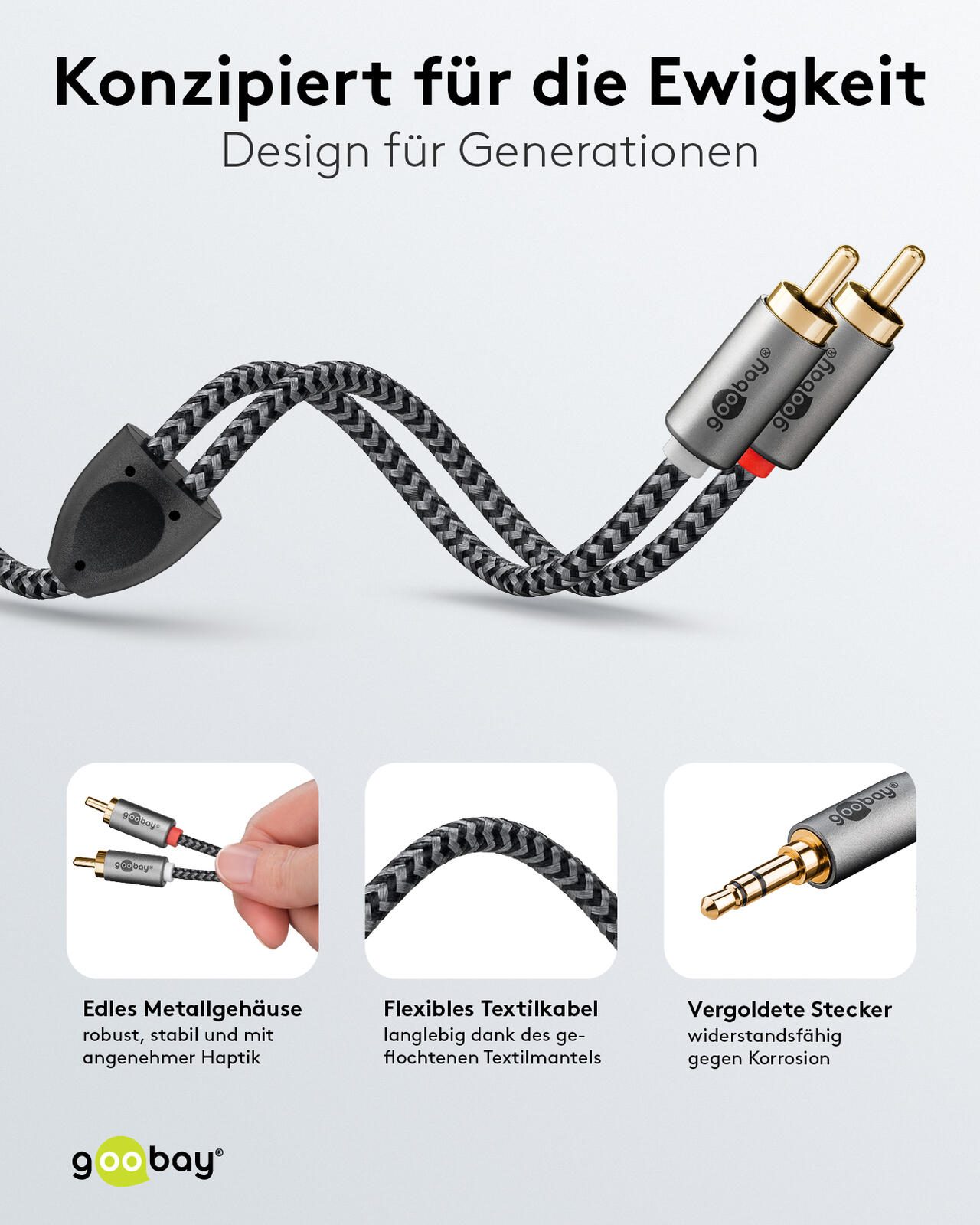 Hergestellt wird das Kabel von der Marke goobay, vertreten durch die Wentronic GmbH mit Sitz in Braunschweig, Deutschland. Die Verarbeitung ist auf eine zuverlässige Nutzung ausgelegt, sodass das Kabel für den alltäglichen Gebrauch geeignet ist.