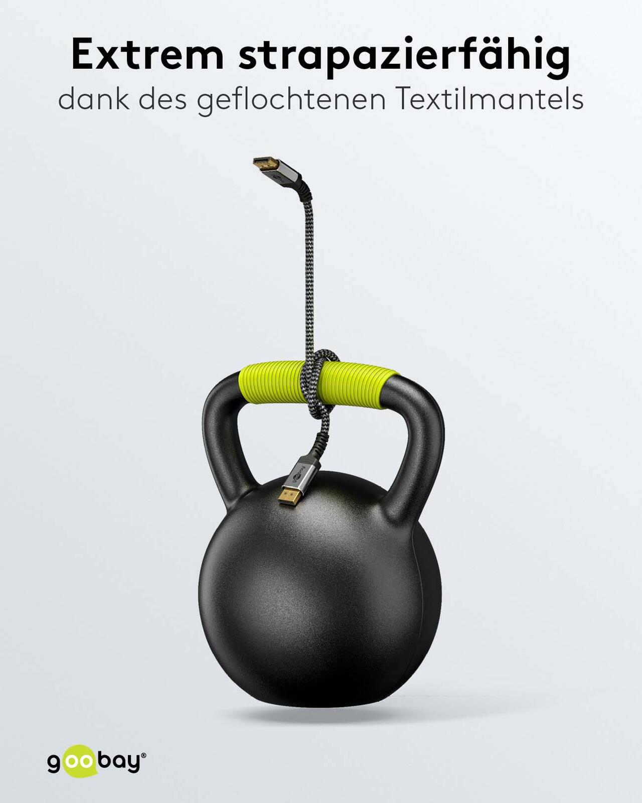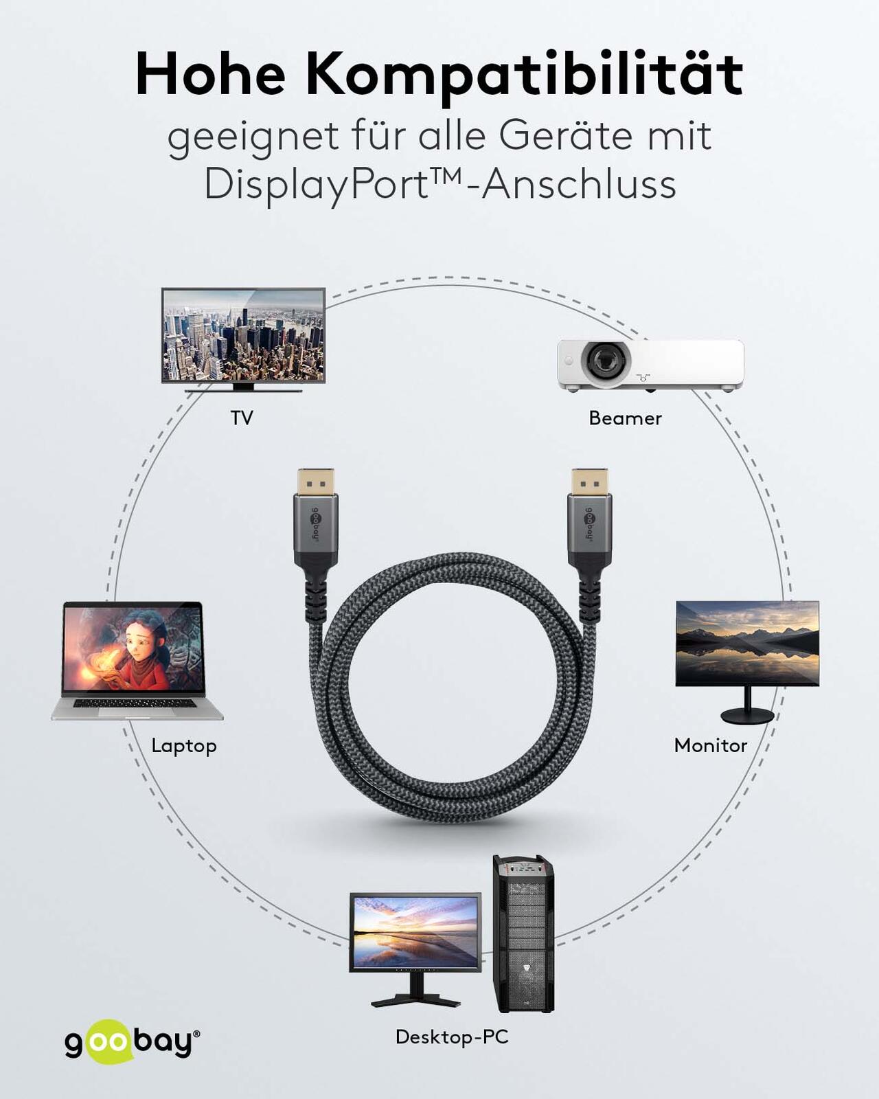goobay DisplayPort 1.4 Kabel 3,0 m grau, schwarz, 1 St.