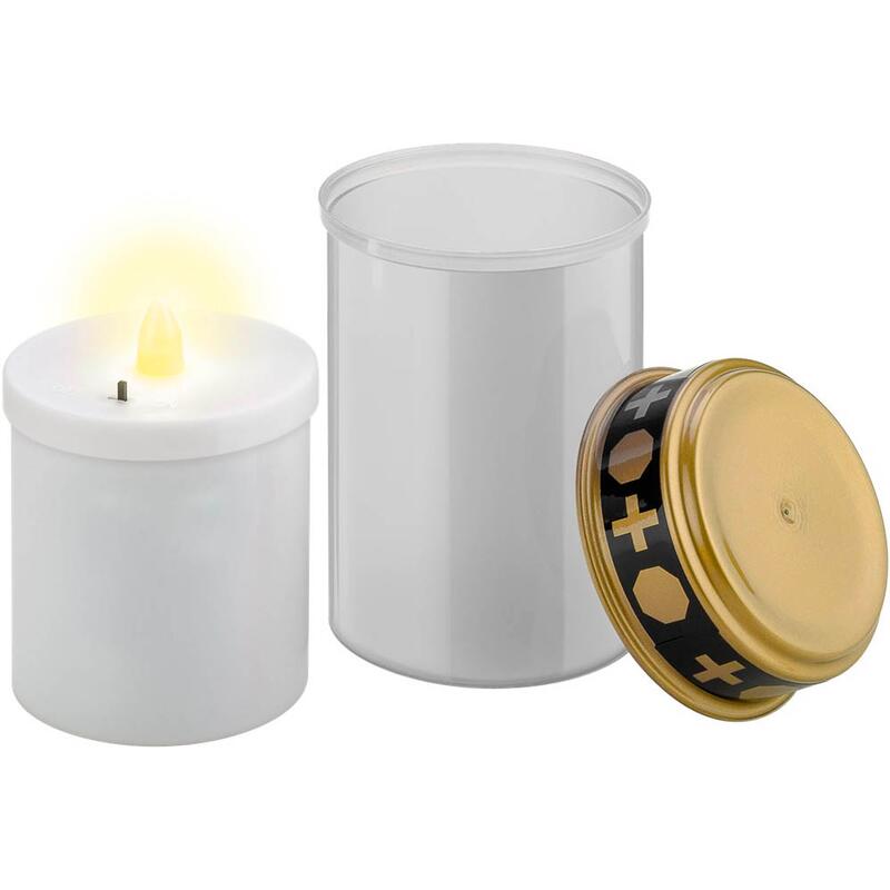Das goobay Grablicht LED mit Timer in Weiß ist eine praktische und langlebige Alternative zu herkömmlichen Grabkerzen. Gefertigt aus robustem Kunststoff, bietet es eine Höhe von 12,3 cm und einen Durchmesser von 7,3 cm. Die weiße Farbe sorgt für eine dezente und würdige Optik.