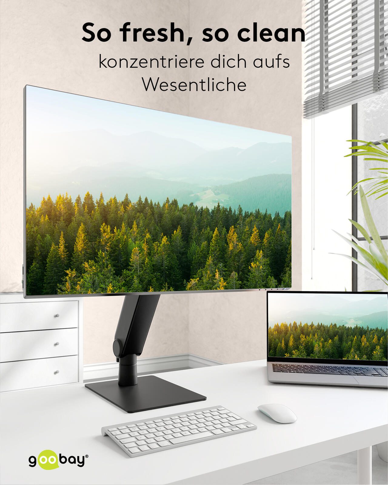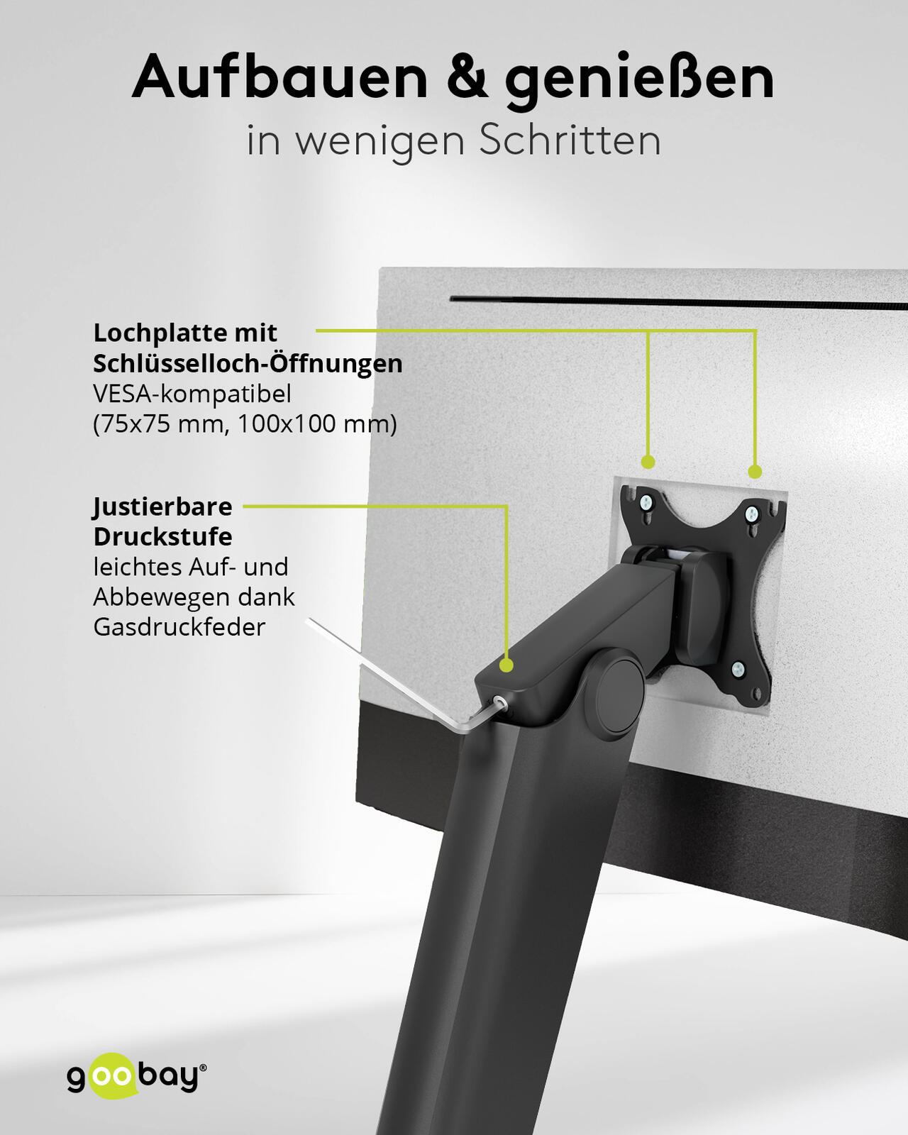 Die goobay Monitorhalterung Tisch ist eine praktische Halterung für Monitore, die speziell für den Einsatz auf dem Schreibtisch konzipiert wurde. Sie bietet eine stabile und flexible Lösung, um einen Monitor sicher zu befestigen und den Arbeitsplatz ergonomisch zu gestalten. Die Halterung besteht aus robusten Materialien wie Aluminium und Stahl, die für eine lange Lebensdauer und hohe Stabilität sorgen.