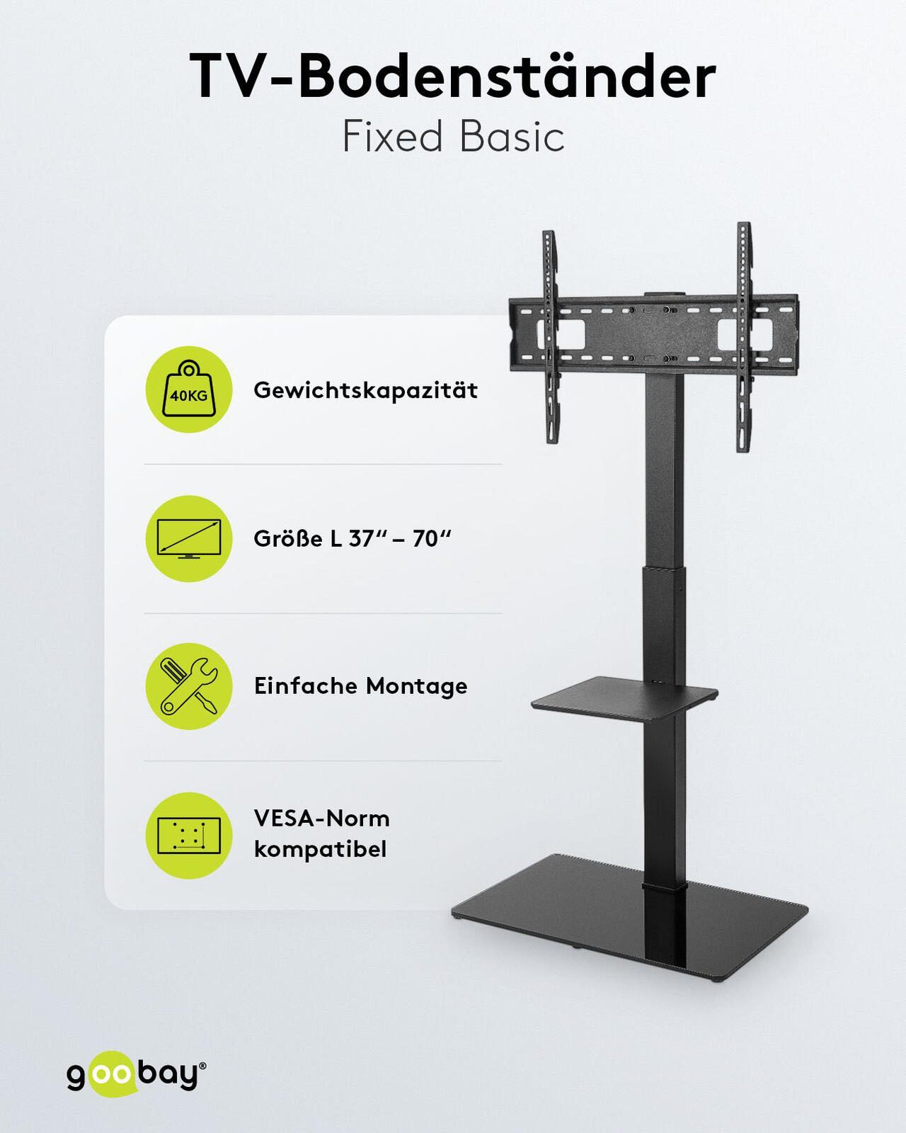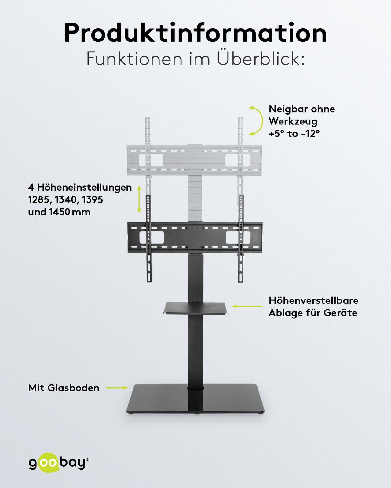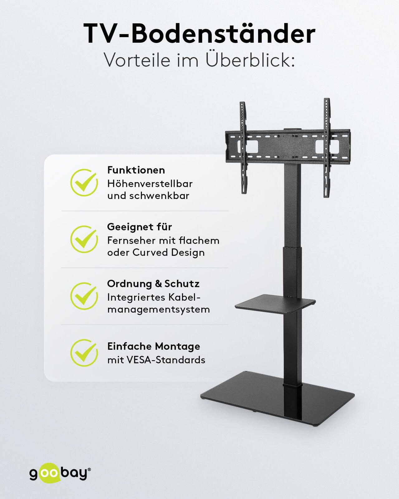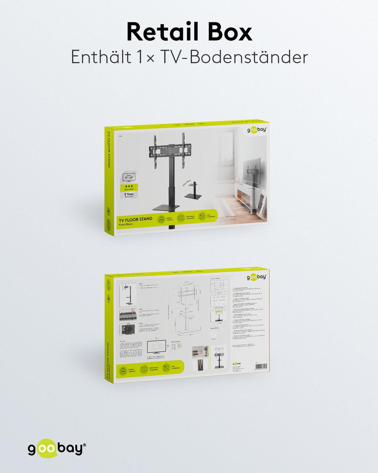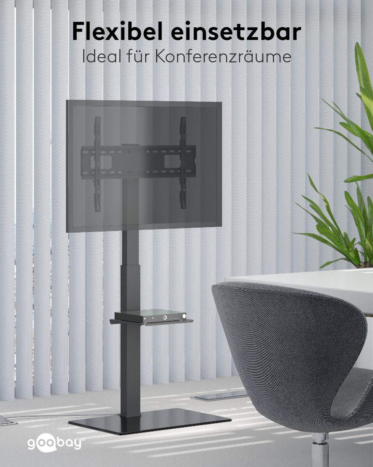 Ob im Wohnzimmer, im Schlafzimmer oder im Medienraum, dieser TV-Ständer bietet Ihnen die Flexibilität, den Fernseher an den gewünschten Ort zu stellen, ohne Kompromisse bei der Sicherheit eingehen zu müssen. Vertrauen Sie auf die Qualität von goobay und genießen Sie ein aufgeräumtes und stilvolles Zuhause mit dem TV-Ständer Basic in Größe L.