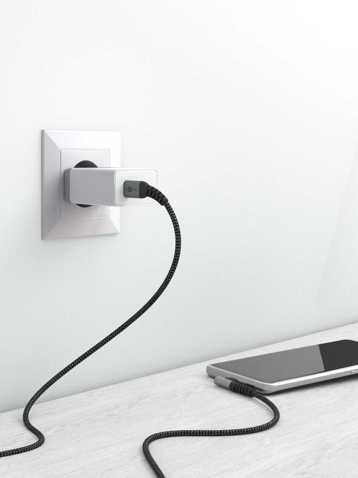 goobay USB-C USB-Kabel 2,0 m grau, schwarz, 1 St.