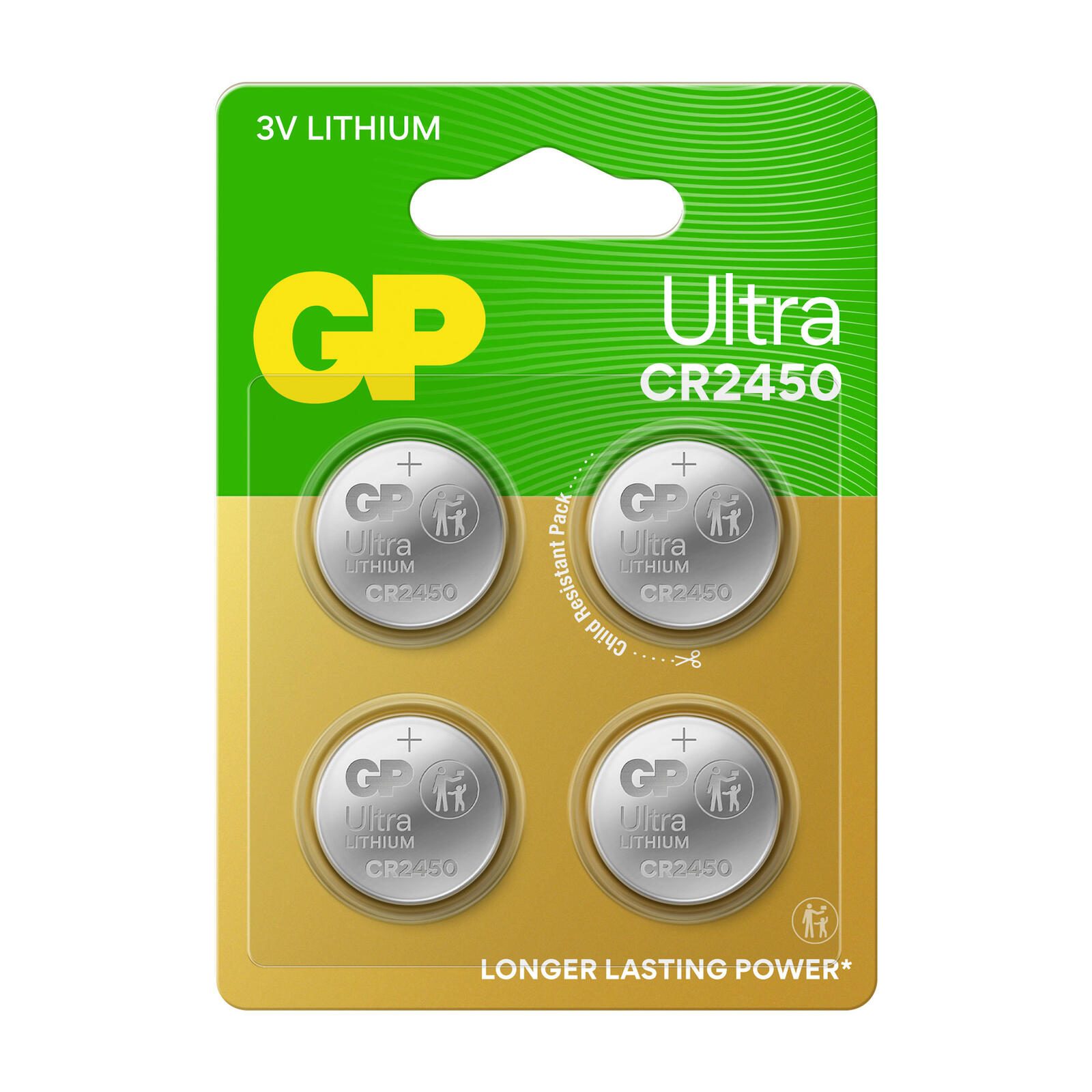 GP Knopfzelle CR2450 Lithium 3,0 V, 4 St.