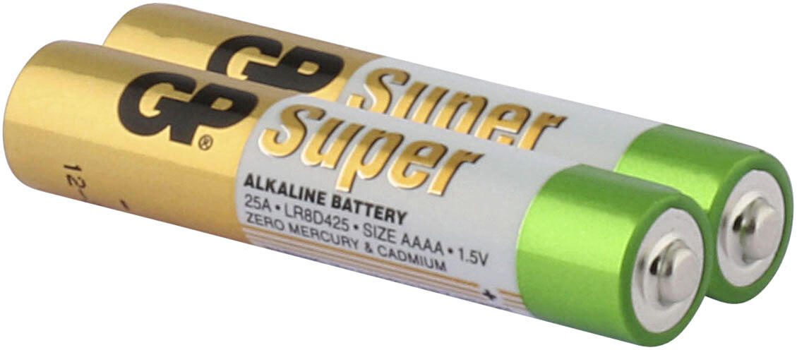 Die GP Batterien Mini AAAA 1.5 V sind die perfekte Lösung für Geräte mit hohem Energiebedarf. Diese hochwertigen Alkali-Mangan-Batterien bieten eine zuverlässige und langanhaltende Energiequelle, die dich bei deinen täglichen Aktivitäten unterstützt. Egal, ob du sie für Fernbedienungen, Spielzeuge oder andere elektronische Geräte benötigst, die Mini AAAA Batterien von GP garantieren eine konstante Leistung. Mit der Bezeichnung Mini AAAA, auch bekannt als LR 8, LR 61, MN2500 oder LR8D425, sind diese Batterien vielseitig einsetzbar und bieten dir die Flexibilität, die du brauchst. Sie sind speziell für Geräte konzipiert, die eine hohe Leistung erfordern, und sorgen dafür, dass deine Geräte immer betriebsbereit sind. Wenn du Wert auf Qualität und Langlebigkeit legst, sind die GP Super Batterien Mini die ideale Wahl. Jede Packung enthält zwei Batterien, sodass du immer eine Ersatzbatterie zur Hand hast, wenn du sie am dringendsten benötigst. Die einfache Handhabung und die zuverlässige Leistung machen die GP Batterien Mini AAAA 1.5 V zu einem unverzichtbaren Begleiter in deinem Alltag. Vertraue auf die Marke GP, die für ihre hochwertigen Produkte bekannt ist, und erlebe die Vorteile dieser leistungsstarken Batterien.Technische Daten