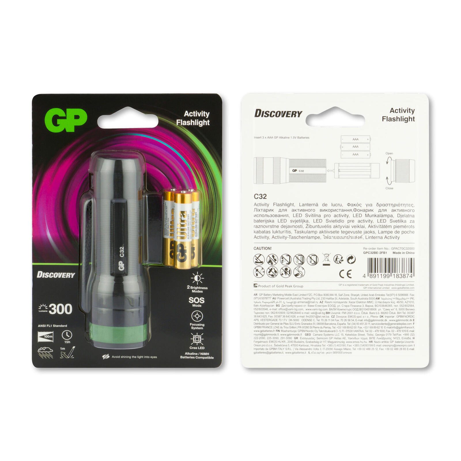 Du suchst nach einer zuverlässigen Taschenlampe, die dich in jeder Situation begleitet? Die GP Taschenlampe in elegantem Schwarz könnte genau das sein, was du brauchst. Mit einer Länge von 10,6 cm ist sie kompakt und handlich, ideal für unterwegs. Diese hochwertige LED-Taschenlampe der Marke GP überzeugt nicht nur durch ihr schlichtes Design, sondern auch durch ihre Leistung. Mit starken 300 Lumen erhellt sie deine Umgebung zuverlässig. Egal ob beim Camping, in der Werkstatt oder einfach zu Hause, diese Taschenlampe leistet stets gute Dienste. Dank ihrer robusten Aluminiumkonstruktion ist die GP Taschenlampe auch für den Outdoor-Einsatz geeignet. Sie ist bis zu 1,0 m fallbeständig, was bedeutet, dass sie auch Stürze unbeschadet übersteht. Die Anti-Rutsch-Oberfläche sorgt zudem für einen sicheren Grip, selbst bei widrigen Witterungsbedingungen. Im Lieferumfang enthalten sind 3 AAA Micro-Batterien, ein praktisches USB-Kabel zum Aufladen sowie eine Handgelenkschlaufe, damit du die Taschenlampe immer griffbereit hast. Die Marke GP steht für Qualität und Zuverlässigkeit, und die Taschenlampe C32 ist hier keine Ausnahme. Setze auf die GP Taschenlampe 10.6 cm in Schwarz – dein treuer Begleiter in allen Lebenslagen.