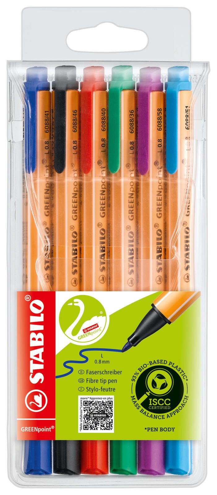Die STABILO Filzstifte in mehrfarbiger Ausführung mit einer Strichstärke von 0.8 mm sind die ideale Wahl für kreative Köpfe, die Wert auf Qualität und Vielseitigkeit legen. Mit ihrer runden Spitze ermöglichen sie präzises Zeichnen und Schreiben, während die Wasserbasis-Tinte für ein angenehmes und geruchsarmes Erlebnis sorgt. Diese Filzstifte sind nicht nur wasserlöslich, sondern auch auswaschbar, was sie besonders benutzerfreundlich macht. Die schnelle Trocknungszeit der Tinte sorgt dafür, dass deine Kunstwerke und Notizen sofort einsatzbereit sind, ohne dass du dir Gedanken über Verschmieren machen musst. Dank des praktischen Clips und der Schutzklappe sind die Stifte immer gut geschützt und leicht zu transportieren. Die sechseckige Form der Stifte bietet zudem einen komfortablen Griff, der das Zeichnen und Schreiben auch über längere Zeit angenehm gestaltet. In einem Set erhältst du sechs verschiedene Farben: rot, grün, blau, schwarz, türkis und lila. Diese farbsortierte Auswahl ermöglicht es dir, deiner Kreativität freien Lauf zu lassen und deine Projekte lebendig zu gestalten. Egal, ob du für die Schule, das Büro oder für dein persönliches Kunstprojekt arbeitest, die STABILO Filzstifte sind eine hervorragende Ergänzung für dein Schreib- und Zeichensortiment. Verpackt in einem praktischen Kunststoff-Etui sind diese Filzstifte nicht nur optimal für den eigenen Gebrauch, sondern auch ein tolles Geschenk für Freunde und Familie, die gerne kreativ sind. Mit den STABILO Filzstiften Mehrfarbig 0.8 mm bringst du Farbe in dein Leben und machst jeden Schriftzug zum Erlebnis.Technische Daten