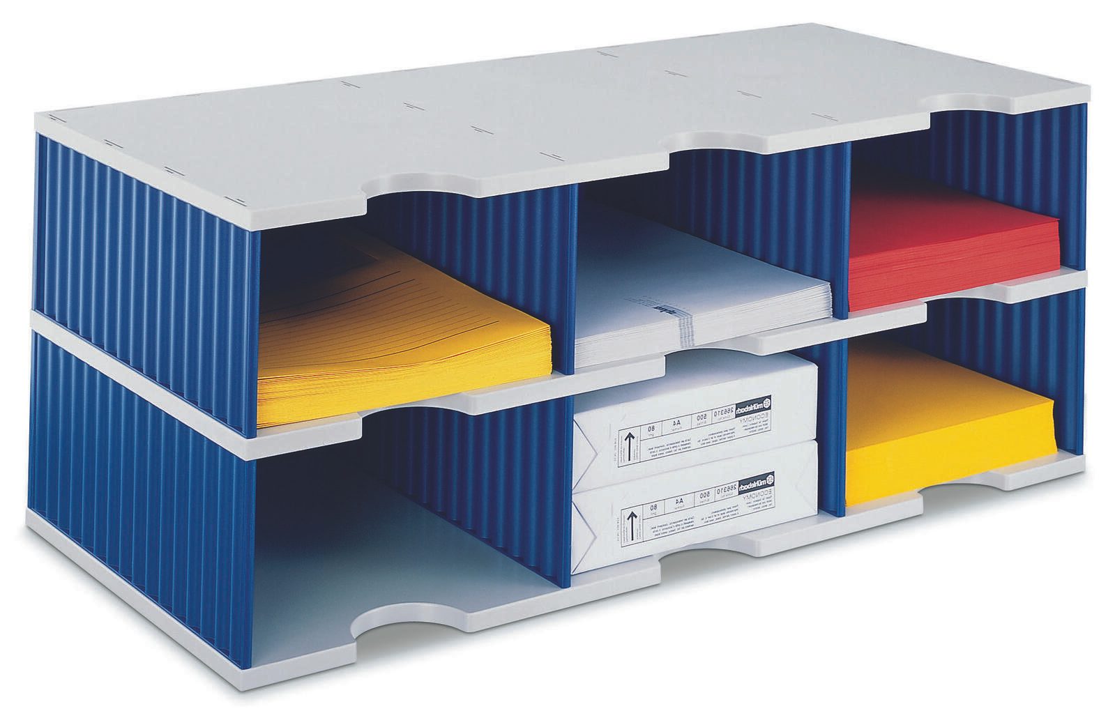 styro Sortierstation Grundeinh.Jumbo Trio 6f.blau/G DIN C4 6-Fach Grau