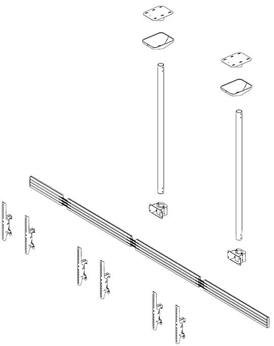 Die VESA-Aufnahmen können bis VESA 600 x 400 mm max. bestückt werden und sind zudem von 0 bis 20° neigbar. Die Gesamtbreite des Systems beträgt 3509 mm. Diese kann bei Bedarf gekürzt werden. Die Kabelführung erfolgt über Kabelclips an den Rails. Die Oberflächen der einzelnen Komponenten werden durch eine schlag- und kratzfeste Pulverbeschichtung in schwarz geschützt. Die maximale Traglast beträgt 40 kg je Screen. Die Komplettlösungen sind mit den Einzelkomponenten der comPROnents-Serie uneingeschränkt kombinier- und erweiterbar und bieten so weitere Einsatzmöglichkeiten.