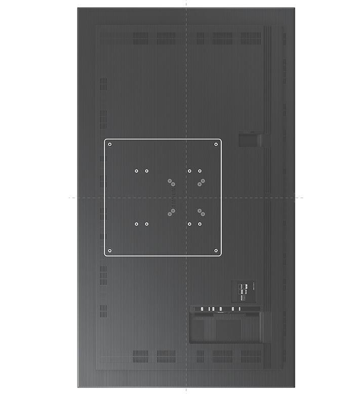 An dieser Stelle schafft die Samsung QB | QH | QM 49 – 65“ Portrait Adapterplatte Abhilfe. Durch das dezentriert angebrachte VESA-Lochbild können die Bildschirme problemlos, zentriert in Portraitausrichtung montiert werden.