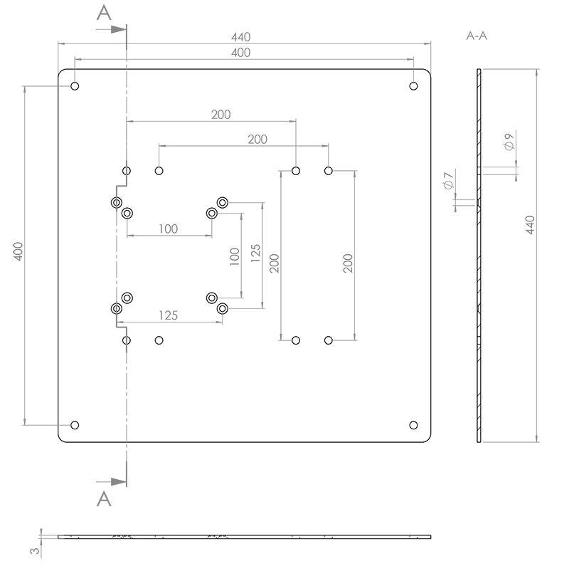 - Abmessungen: B 440 x H 400 x T 3 mm