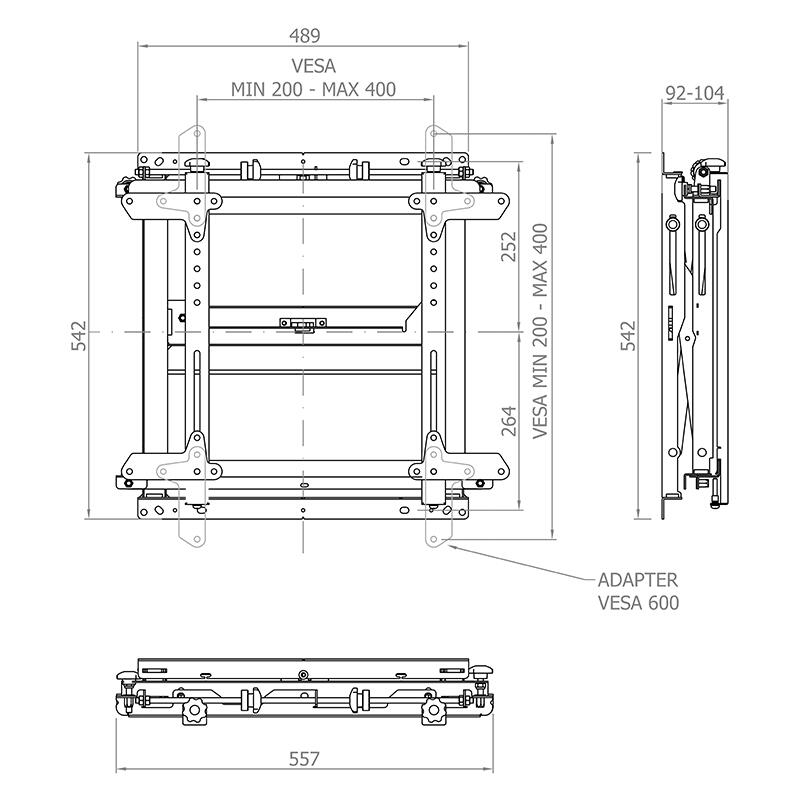 - VESA max. 400×400 mm, Adapter-Set VESA 600x400 / 400x600 mm inkl.