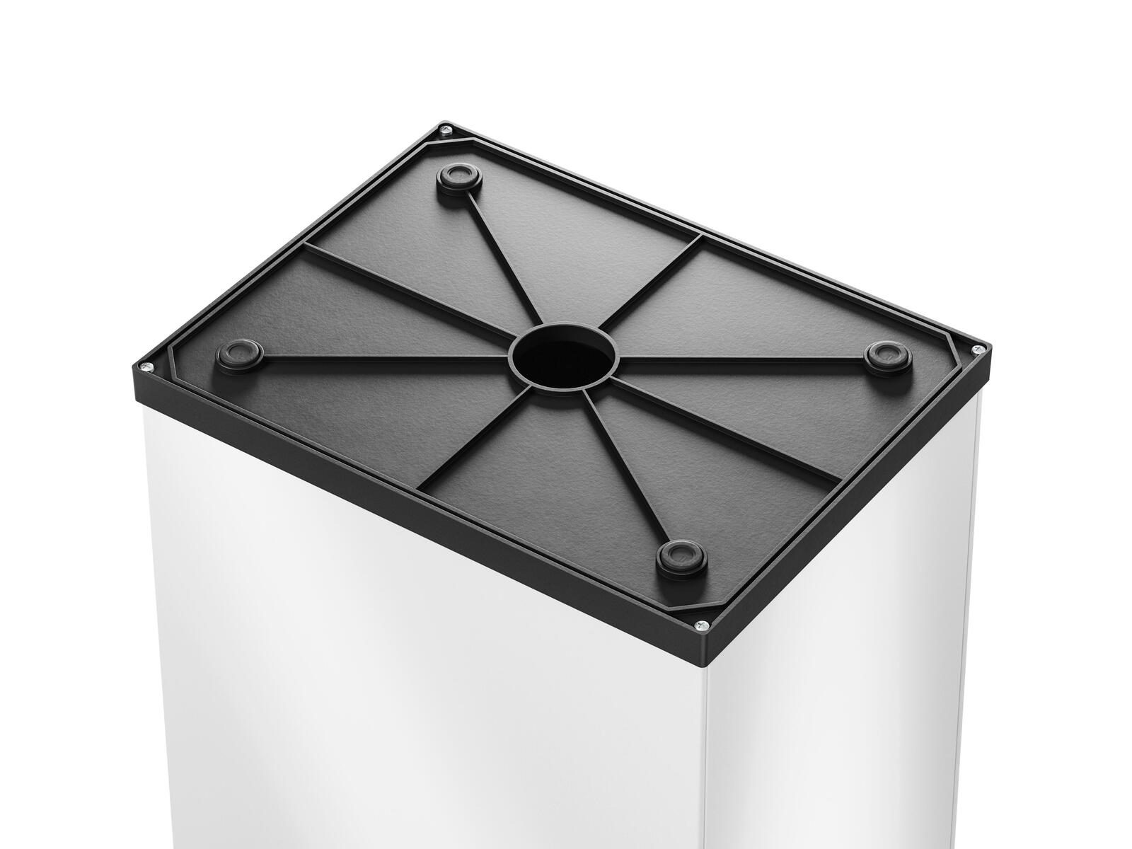 Die Schwingdeckel-Ausführung ermöglicht eine bequeme Handhabung, sodass du den Müll problemlos einwerfen kannst, ohne den Deckel berühren zu müssen. Das schlichte Design fügt sich nahtlos in jede Umgebung ein und macht den Mülleimer zu einem praktischen und gleichzeitig stilvollen Accessoire.