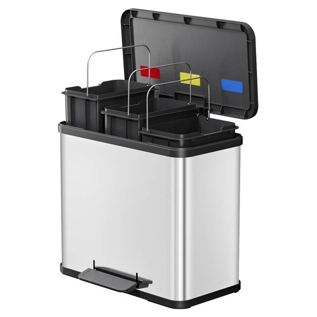 Dank seiner edlen Edelstahl-Oberfläche fügt sich dieser Mülltrenner nahtlos in jeden Raum ein und verleiht deiner Küche oder deinem Büro einen modernen Touch. Die Kombination aus Edelstahl und Kunststoff macht ihn nicht nur robust und langlebig, sondern auch leicht zu reinigen und hygienisch.