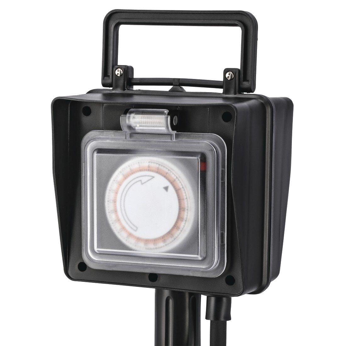 Dank der integrierten Zeitschaltuhr kannst du deine Geräte bequem steuern und Energie sparen. Die selbstschließenden Deckel schützen die Steckdosen vor Schmutz und Feuchtigkeit, während die spritzwassergeschützte IP44-Klassifizierung für eine zuverlässige Nutzung im Außenbereich sorgt.