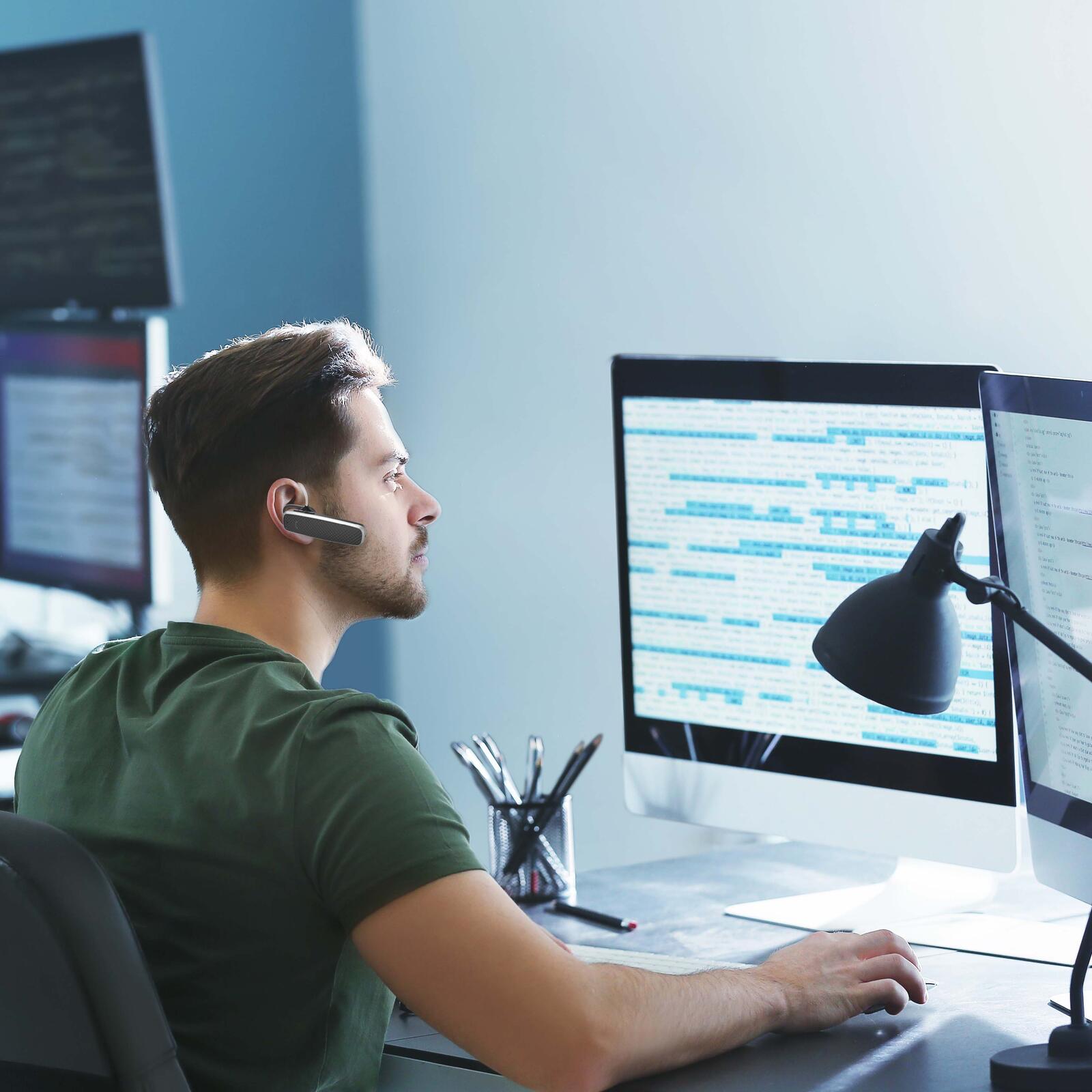 Das Bluetooth-Headset ermöglicht es dir, bequem und kabellos Gespräche zu führen, ohne an das Gerät gebunden zu sein. Dadurch kannst du dich freier bewegen und gleichzeitig effizient arbeiten. Die klare Klangqualität sorgt dafür, dass du jeden Anruf deutlich und ohne störende Hintergrundgeräusche hören kannst.