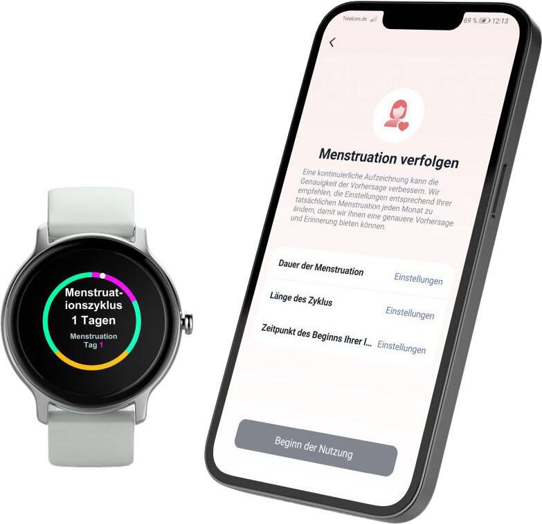 - Eigenschaften: Pulsmessung, Schlafanalyse, Blutsauerstoffmessung, Herzfrequenzmessung, Musiksteuerung, Schrittzähler, spritzwassergeschützt