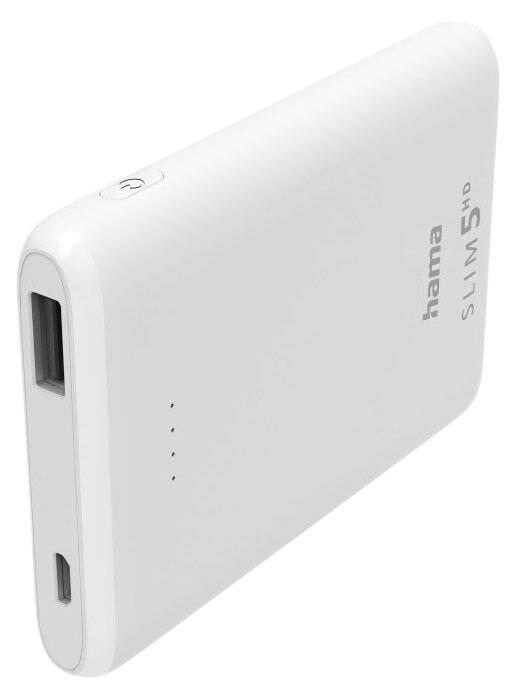 hama SLIM 5HD Powerbank 5.000 mAh weiß