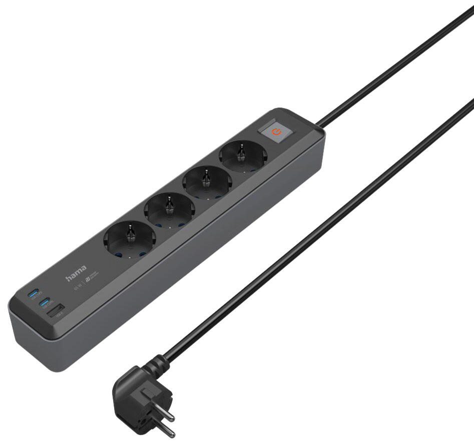 Hama - Steckdosenleiste - USB-C / USB-A 65W, PD, Switch - 3680 Watt