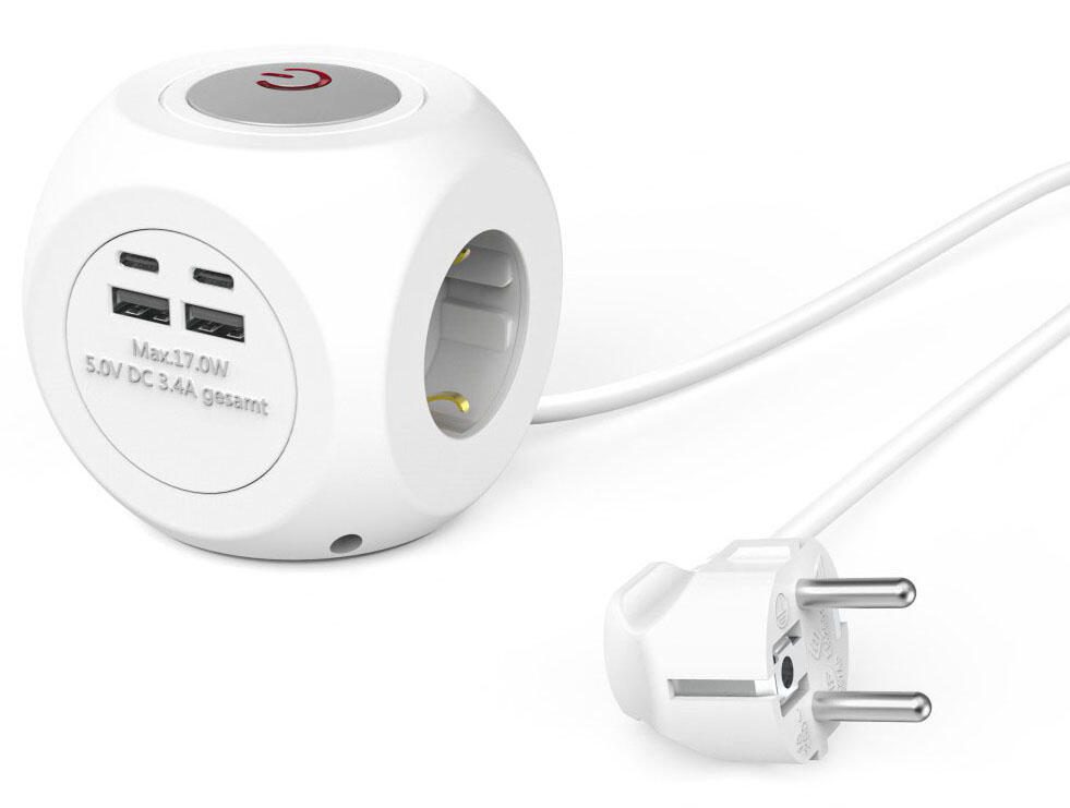 Dieser Steckdosenwürfel von Hama vereint Funktionalität mit einem ansprechenden Design. Dank des Kunststoffmaterials ist er nicht nur leicht, sondern auch langlebig. Außerdem punktet er mit einem kompakten Würfeldesign, das nicht nur platzsparend ist, sondern auch ins Auge fällt.