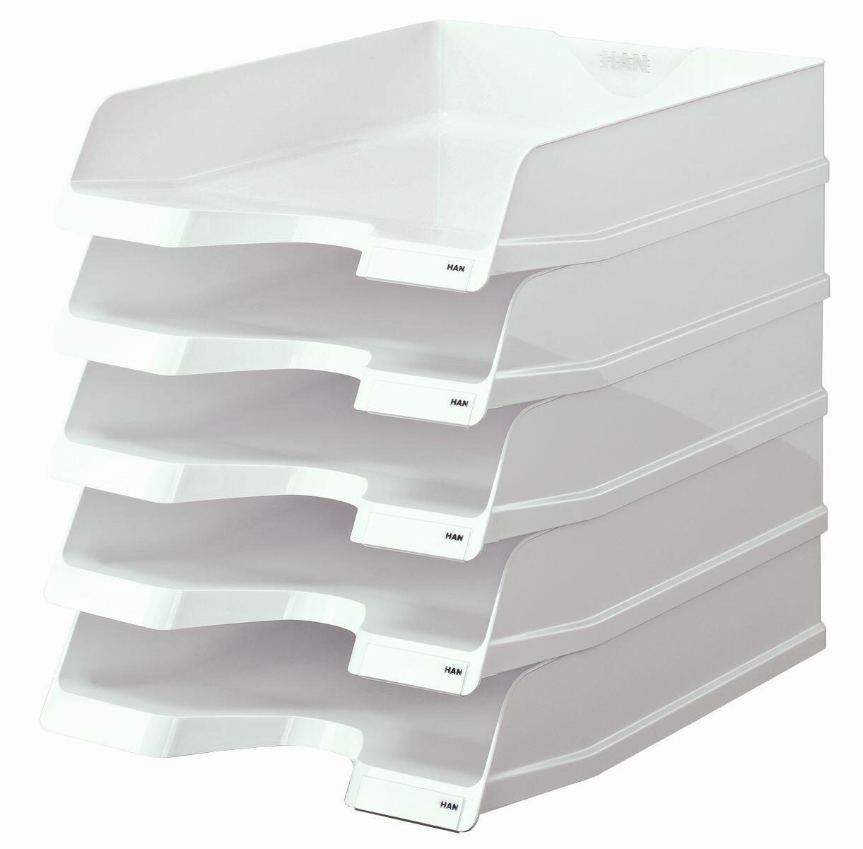 Die HAN Briefablagen DIN C4 in strahlendem Weiß sind die perfekte Lösung, um deine Unterlagen stilvoll und ordentlich zu organisieren. Diese hochglänzenden Ablagen bieten nicht nur eine ansprechende Optik, sondern auch eine praktische Funktionalität, die in jedem Büro oder Homeoffice unerlässlich ist. Mit einem Außenmaß von 25,2 x 34,0 x 6,5 cm sind sie ideal für das Format DIN C4 geeignet, sodass du auch größere Dokumente problemlos ablegen kannst. Hergestellt aus hochwertigem Polystyrol, zeichnen sich die Briefablagen durch ihre Langlebigkeit und Stabilität aus. Die glatte Oberfläche sorgt für eine einfache Reinigung und verleiht deinem Arbeitsplatz einen modernen Look. Dank der stapelbaren Konstruktion kannst du mehrere Ablagen übereinander anordnen, was nicht nur Platz spart, sondern auch für eine übersichtliche Organisation sorgt. In einer Packung erhältst du fünf dieser praktischen Briefablagen, sodass du genügend Platz für all deine wichtigen Unterlagen hast. Ob für Rechnungen, Verträge oder andere Dokumente – die HAN Briefablagen bieten dir die Flexibilität, die du benötigst, um deine Papiere stets griffbereit und ordentlich zu halten. Die weiße Farbe fügt sich harmonisch in jedes Raumkonzept ein und sorgt dafür, dass dein Arbeitsplatz immer aufgeräumt und professionell wirkt. Entscheide dich für die HAN Briefablagen DIN C4 und erlebe eine neue Dimension der Büroorganisation.Technische Daten