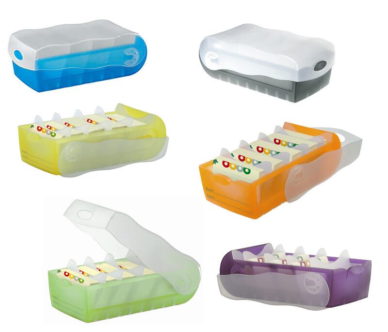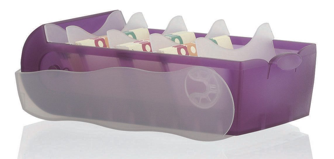 Der Karteikasten besteht aus robustem Kunststoff und bietet Platz für bis zu 500 Karteikarten im DIN A8-Format. Die transparenten lila Deckel sorgen nicht nur für einen stylischen Look, sondern ermöglichen es dir auch, den Inhalt des Kastens auf einen Blick zu erkennen.