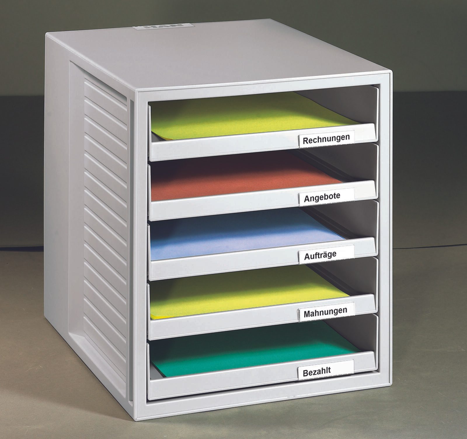 Das Schubladen-Set besteht aus insgesamt 5 offenen Schubladen, die stapelbar sind und aus antistatischem, schwermetallfreiem Polystyrol gefertigt sind. Diese Materialart gewährleistet nicht nur Langlebigkeit, sondern auch eine sichere Aufbewahrung deiner Dokumente.