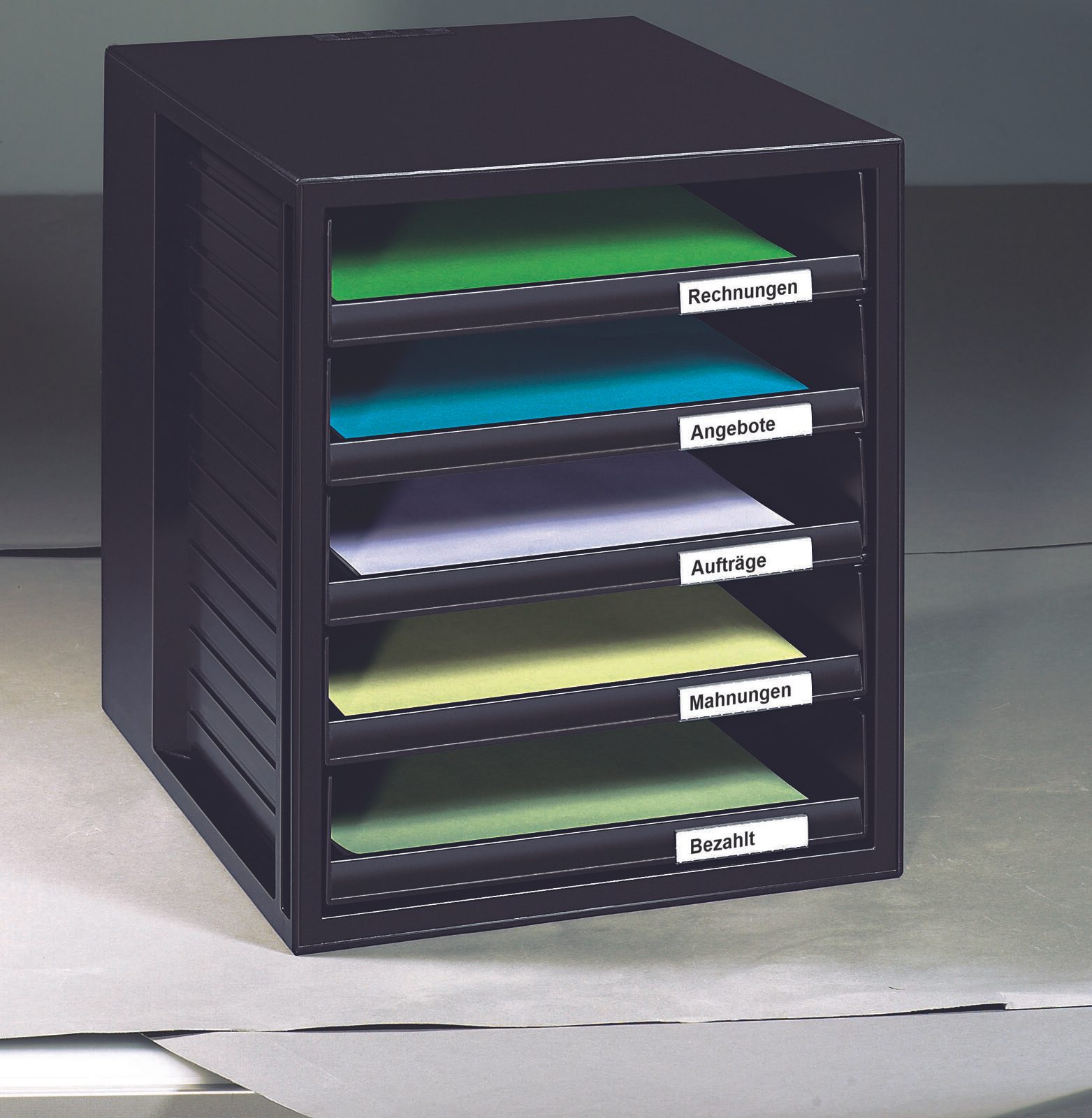 Die HAN Schubladenbox 1401-13 ist die perfekte Lösung für die ordentliche Aufbewahrung und Organisation deiner Unterlagen im DIN C4 Format. Mit den kompakten Maßen von 27,5 x 33,0 x 32,0 cm passt diese Schubladenbox ideal in jedes Büro oder Home-Office und bietet dir ausreichend Platz für Dokumente, Akten und andere wichtige Unterlagen. Die Schubladenbox verfügt über fünf offene Schubladen in ansprechendem Schwarz, die dir einen schnellen Zugriff auf deine Materialien ermöglichen. Das antistatische, schwermetallfreie Polystyrol sorgt nicht nur für eine langlebige Nutzung, sondern schützt auch deine sensiblen Dokumente vor statischer Aufladung. Die Verwendung von hochwertigen Materialien macht die Box zu einem umweltfreundlichen und sicheren Aufbewahrungsort. Ein weiteres Highlight dieser Schubladenbox ist ihre Stapelbarkeit. Du kannst mehrere Boxen bequem übereinander stapeln, um Platz zu sparen und gleichzeitig eine übersichtliche Ordnung zu schaffen. Dies ist besonders vorteilhaft, wenn du in einem kleinen Raum arbeitest oder einfach nur eine effiziente Lösung zur Aufbewahrung deiner Unterlagen suchst. Die HAN Schubladenbox 1401-13 ist nicht nur funktional, sondern auch stilvoll. Der elegante schwarze Farbton fügt sich harmonisch in jede Büroeinrichtung ein und verleiht deinem Arbeitsplatz ein professionelles Ambiente. Mit dieser Schubladenbox investierst du in eine praktische und ansprechende Lösung, die dir hilft, deine Dokumente stets griffbereit und ordentlich zu halten.Technische Daten