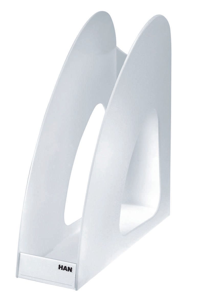 Der HAN Stehsammler in strahlendem Weiß fügt sich harmonisch in jede Arbeitsumgebung ein und verleiht ihr einen professionellen Touch. Durch das praktische Griffloch ist er leicht zu transportieren und zu handhaben, wenn du deine Unterlagen organisieren möchtest.