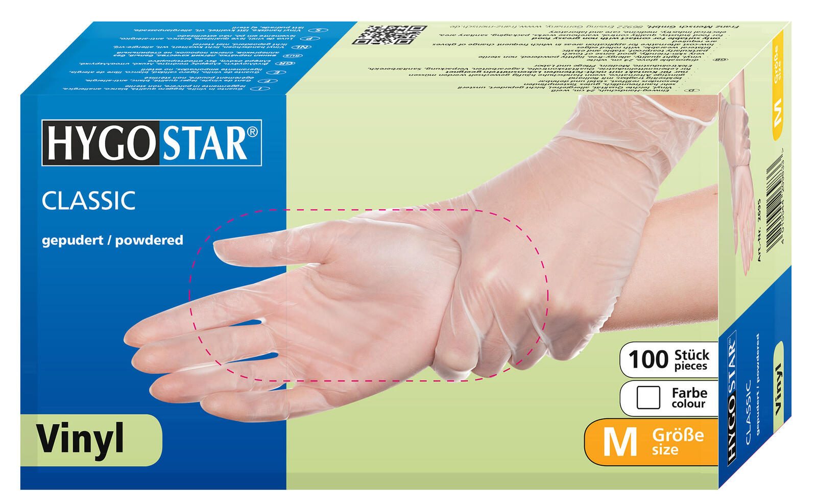 Die HYGOSTAR Einmalhandschuhe CLASSIC in der Größe M bieten eine hervorragende Kombination aus Funktionalität und Komfort. Diese transparenten Handschuhe sind aus hochwertigem Vinyl gefertigt und zeichnen sich durch ihre Vielseitigkeit aus. Sie sind nicht waschbar, gepudert und wasserdicht, was sie zu einer idealen Wahl für verschiedene Einsatzbereiche macht. Mit diesen Einmalhandschuhen bist du bestens ausgestattet, insbesondere wenn es um die Anwendung bei nicht fettenden Produkten geht. Sie sind perfekt für den häufigen Handschuhwechsel geeignet und gewährleisten gleichzeitig ein hohes Maß an Hygiene, da sie unsteril sind. Die Handschuhe sind ideal für den Einsatz in der Kosmetik, Reinigung und Pflege, wodurch sie sich für zahlreiche berufliche und private Anwendungen anbieten. Die HYGOSTAR CLASSIC Einmalhandschuhe in Weiß bieten nicht nur einen ansprechenden Farbton, sondern auch eine praktische Lösung für alle, die Wert auf Sauberkeit und Sicherheit legen. Mit einer Packung von 100 Stück bist du bestens für den Alltag gerüstet. Ob bei der Arbeit im Salon, bei Reinigungsarbeiten oder in der Pflege – diese Handschuhe bieten dir den nötigen Schutz und ein angenehmes Tragegefühl. Dank ihrer unisex Passform sind die HYGOSTAR Einmalhandschuhe für jeden geeignet und bieten einen sicheren Sitz. Die Verwendung von gepudertem Vinyl sorgt zudem für eine einfache Handhabung, sodass du dich auf deine Aufgaben konzentrieren kannst, ohne dir Gedanken über die Handschuhe machen zu müssen. Entscheide dich für die HYGOSTAR Einmalhandschuhe CLASSIC M und profitiere von hochwertiger Qualität in jedem Einsatzbereich.Technische Daten