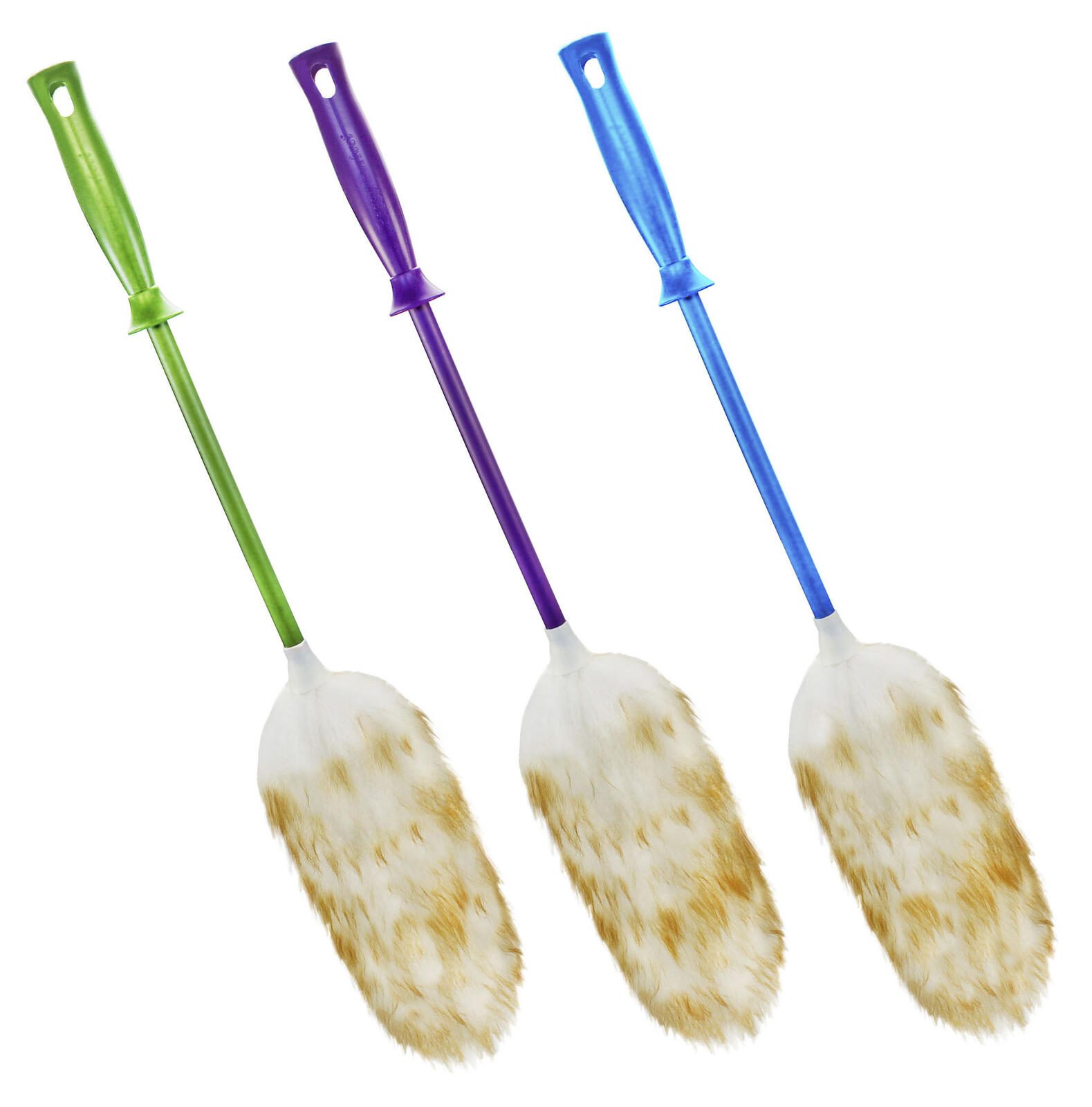 Dank der Kombination aus Mikrofaser und Lammwolle nimmt der Staubwedel Staubpartikel besonders effizient auf und sorgt für eine gründliche Reinigung ohne großen Aufwand. Die flexible und weiche Beschaffenheit des Materials schont dabei Oberflächen und verhindert Kratzer.
