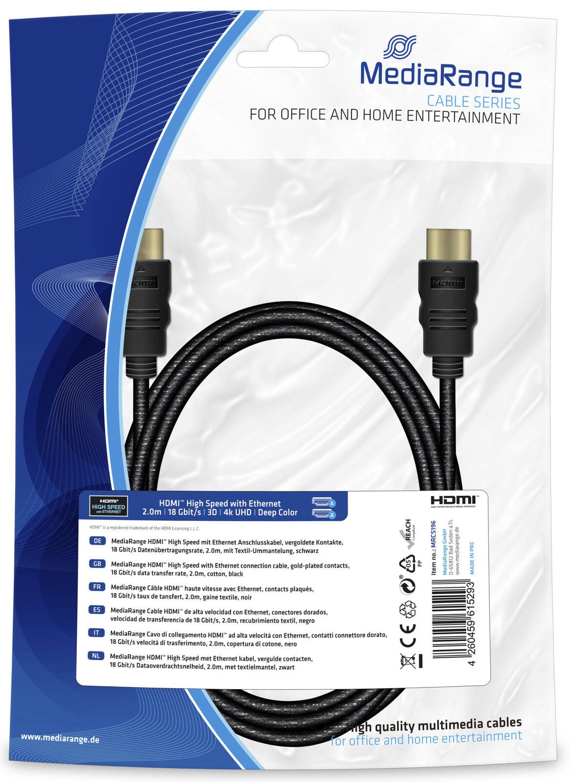 Das MediaRange HDMI-Kabel MRCS196 mit einer Länge von 2 Metern ist die ideale Lösung für alle, die eine zuverlässige Verbindung zwischen ihren Geräten benötigen. Dieses Anschlusskabel bietet Ihnen die Möglichkeit, hochwertige Audio- und Videosignale in beeindruckender Klarheit und Detailtreue zu übertragen. Egal, ob Sie Ihren Fernseher, Monitor oder Projektor anschließen möchten, dieses Kabel gewährleistet eine stabile und störungsfreie Verbindung.