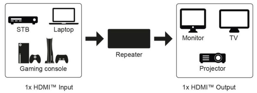- Besonderheiten: Zum Verlängern einer HDMI™-Verbindung auf bis zu 40 m, vergoldete Anschlüsse bieten Korrosionsschutz und bestmögliche Signalübertragung
