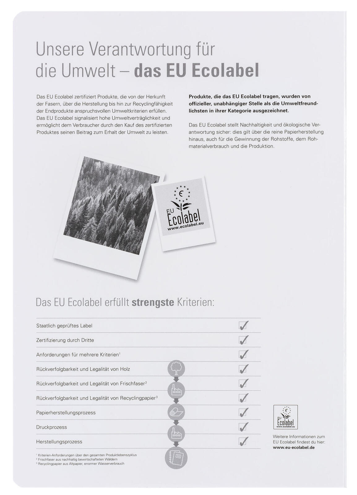 - Besonerheiten: Optik Paper (Hoher Schreibkomfort, hohe Reißfestigkeit , beidseitig beschreibbar, Tinte schlägt nicht durch, hochweiß und satiniert)