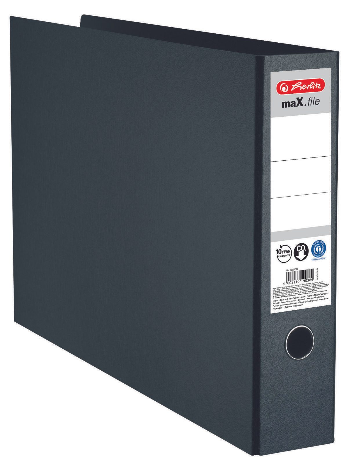 Der herlitz Ordner in der Größe DIN A3 quer ist nicht nur funktional, sondern auch ein stilvolles Accessoire für dein Büro oder Zuhause. Mit einer Rückenbreite von 7.5 cm bietet dieser Ordner ausreichend Platz für eine Vielzahl von Dokumenten, Präsentationen oder Kunstwerken. Die elegante schwarz marmorierte Optik mit Wolkenmarmorierung verleiht ihm eine ansprechende Ästhetik, die sich harmonisch in jede Umgebung einfügt. Hergestellt aus robustem Karton, garantiert der herlitz Ordner Langlebigkeit und Stabilität. Das geklebte Rückenschild sorgt dafür, dass deine Beschriftungen klar und deutlich sichtbar sind, während das Griffloch das Handling erleichtert. So kannst du den Ordner mühelos aus Regalen oder Ablagen entnehmen. Die präzise Hebelmechanik ermöglicht ein einfaches Öffnen und Schließen des Ordners, was dir die Organisation deiner Unterlagen erheblich erleichtert. Ob für die Schule, das Studium oder im Berufsleben, mit diesem Ordner hast du stets alles im Griff und behältst den Überblick über deine wichtigen Dokumente. Der herlitz Ordner ist nicht nur praktisch, sondern auch ein stilvolles Element in deinem Arbeitsumfeld. Mit seiner modernen und eleganten Farbgebung ist er eine ideale Wahl für alle, die Wert auf Ordnung und Design legen. Vertraue auf die Qualität von herlitz und bringe Struktur in deine Unterlagen mit diesem ansprechenden Ordner.Technische Daten